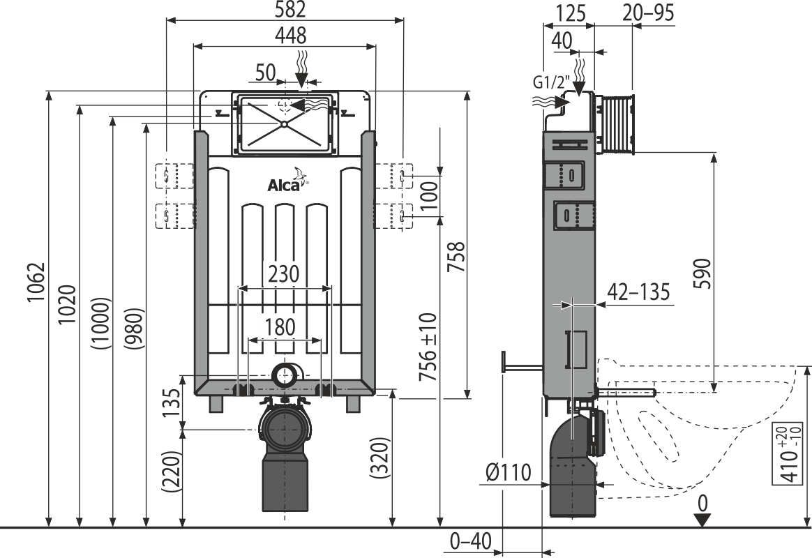 Бачок для унитаза для замуровывания в стену AlcaPlast Renovmodul AM115/1000E Ecology