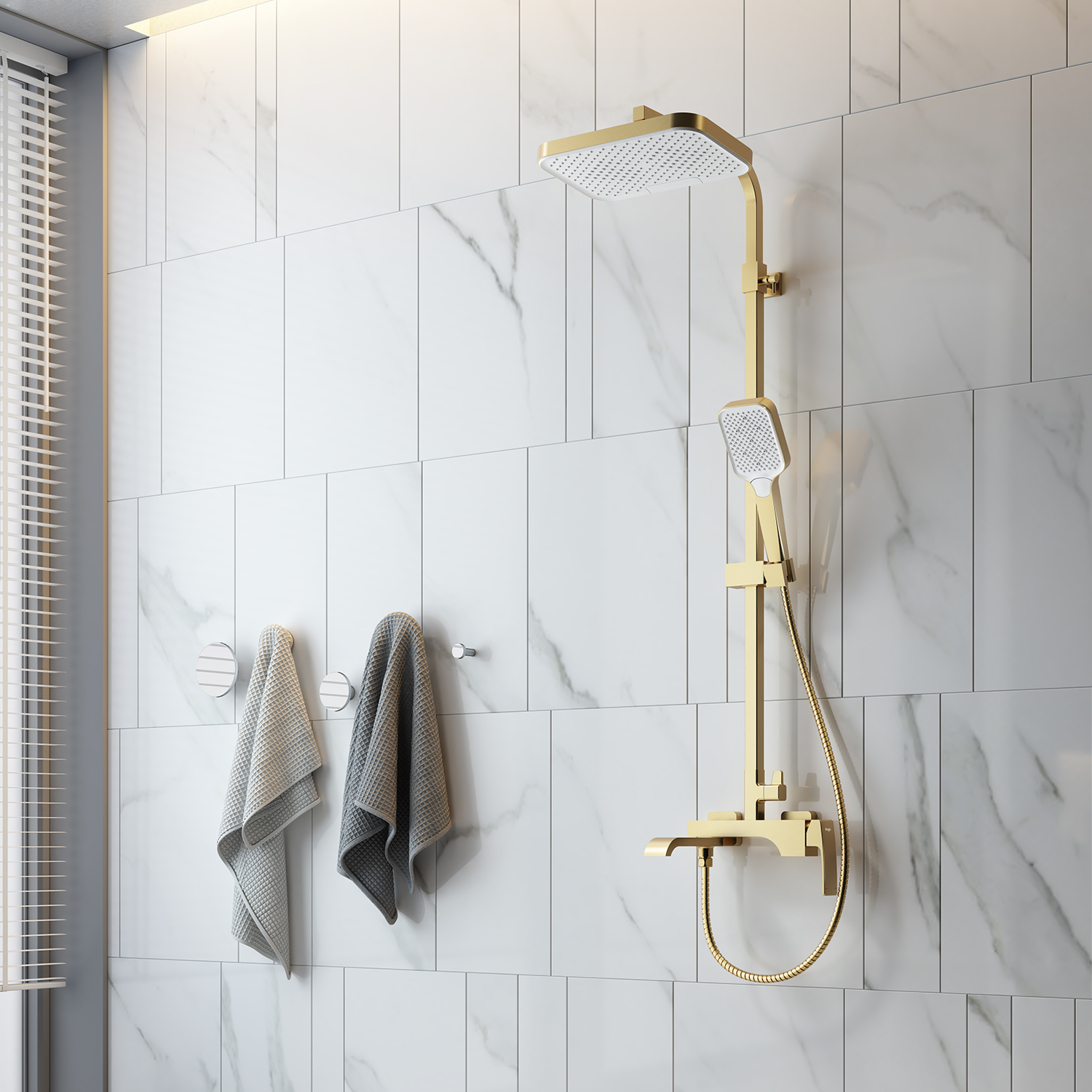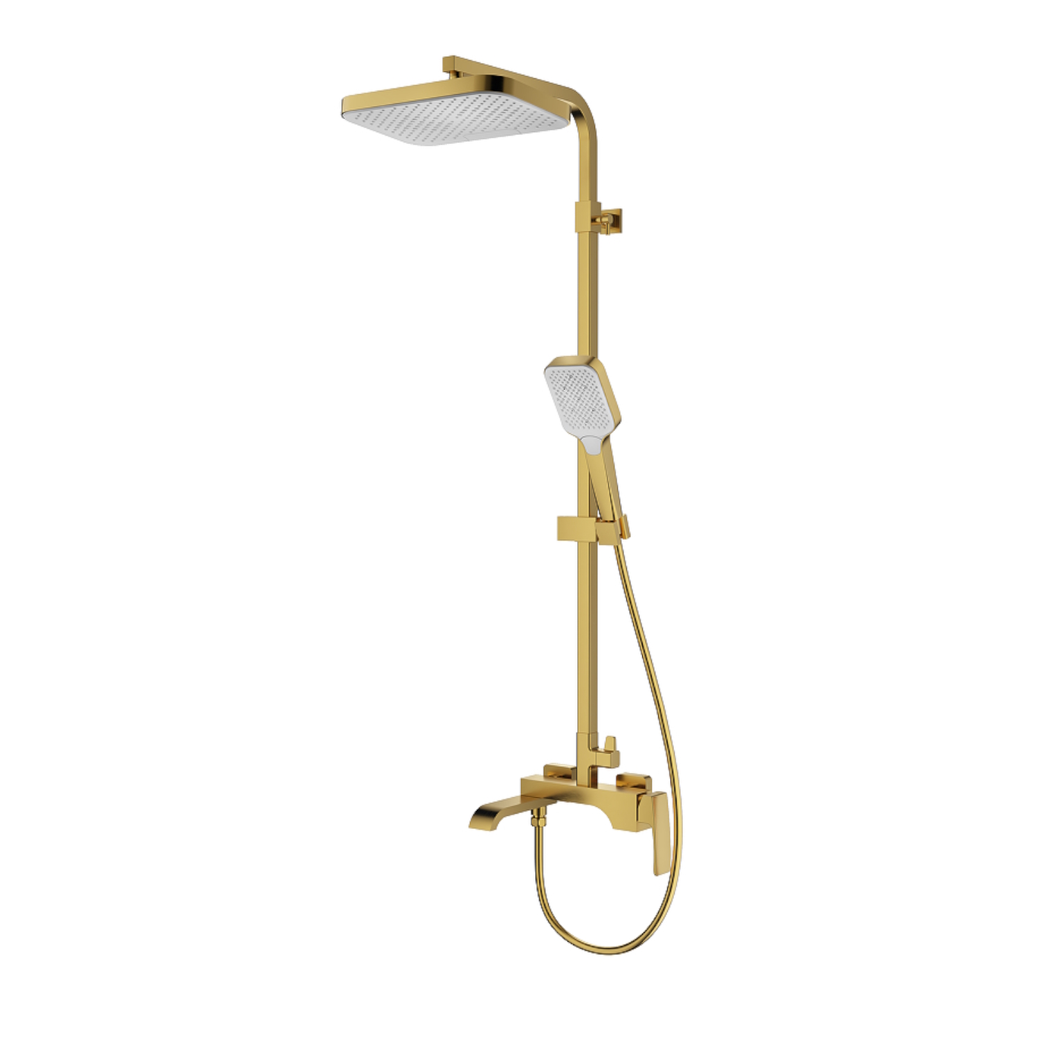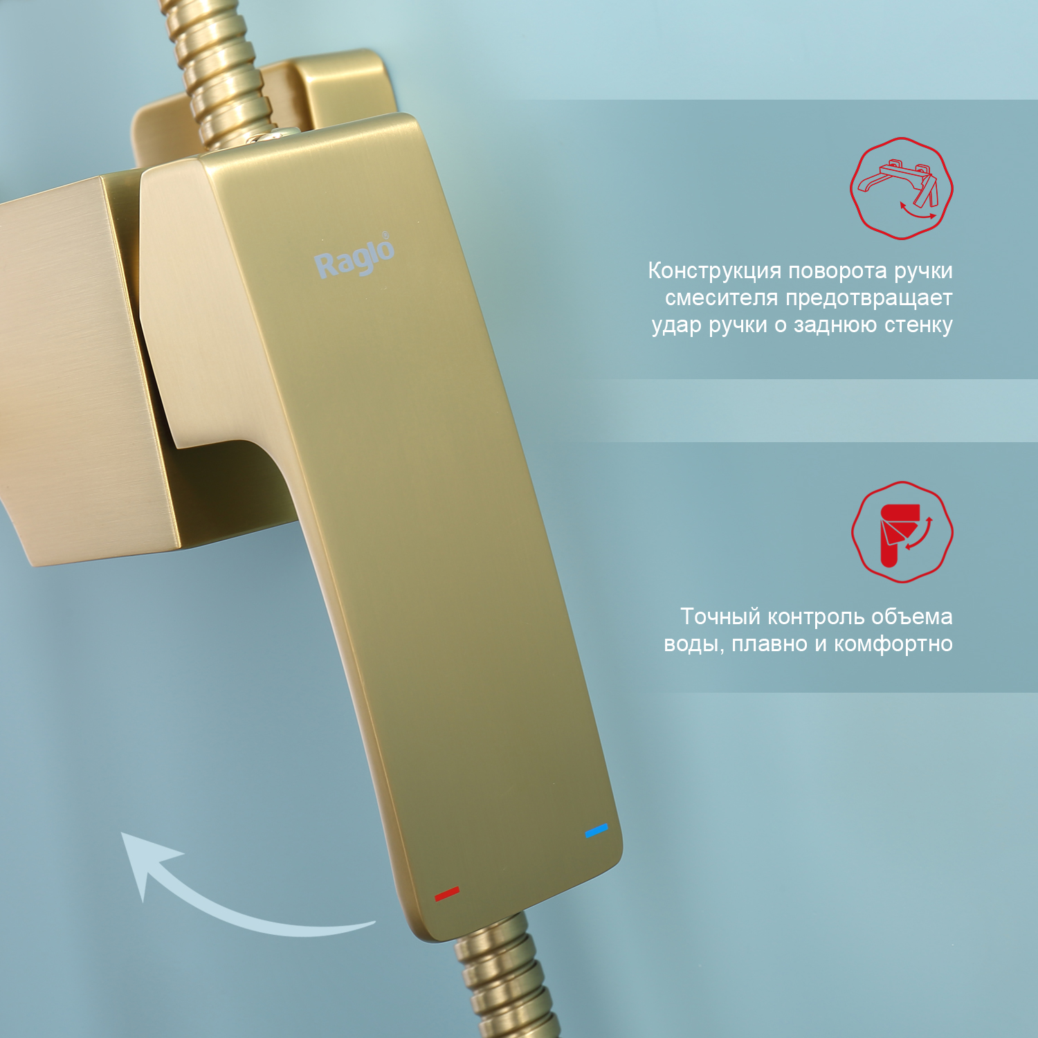 Душевая система Raglo R02.24.03. Цвет: сатин золотой. Материал: латунь. Управление: однорычажное. Механизм: керамический картридж. Излив: поворотный. Аэратор. Тип излива: каскадный. Регулируемая по высоте душевая штанга: 1082-1650 мм. Форма верхнего душа: прямоугольная. Размер верхнего душа (ШхД): 315х208 мм. Регулируемый по высоте и наклону держатель ручного душа. Форма ручного душа: прямоугольная. Количество режимов струи ручного душа: 3. Отверстия для монтажа: 3. Стандарт подводки: G 1/2. Монтаж: на стену.