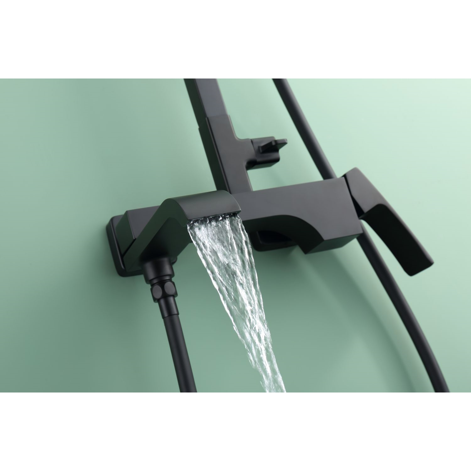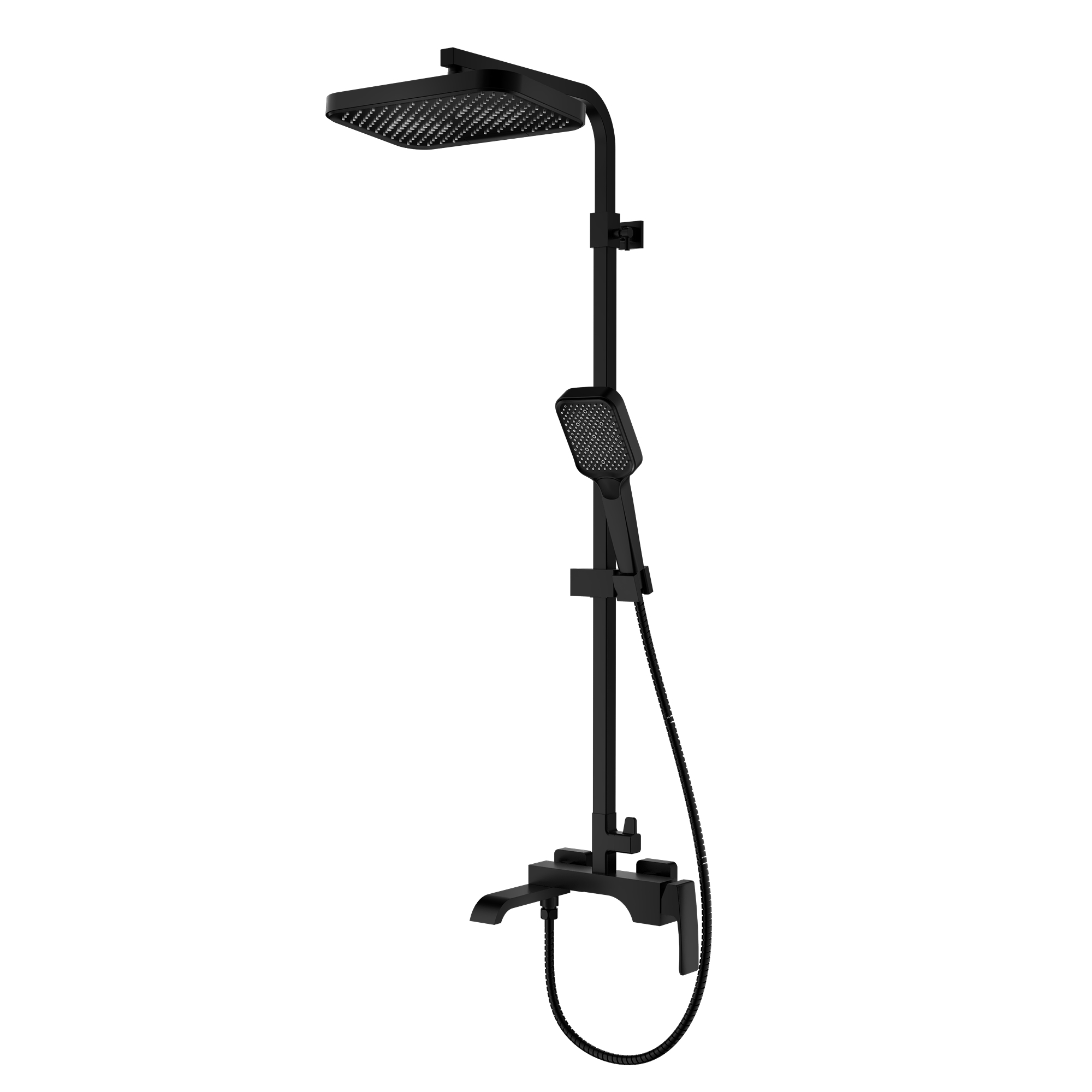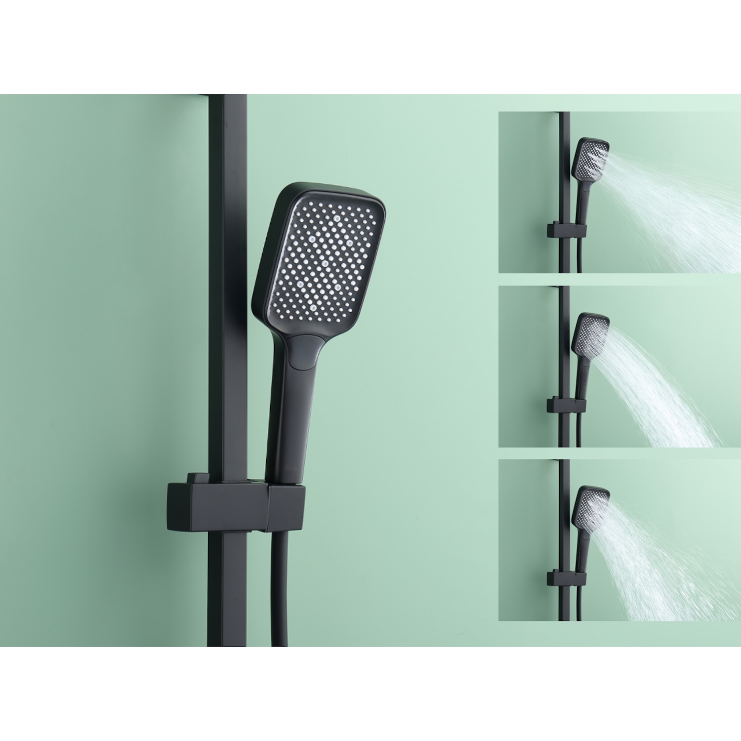 Душевая система Raglo R02.24.06. Цвет: черный. Материал: латунь. Управление: однорычажное. Механизм: керамический картридж. Излив: поворотный. Аэратор. Тип излива: каскадный. Регулируемая по высоте душевая штанга: 1082-1650 мм. Форма верхнего душа: прямоугольная. Размер верхнего душа (ШхД): 315х208 мм. Регулируемый по высоте и наклону держатель ручного душа. Форма ручного душа: прямоугольная. Количество режимов струи ручного душа: 3. Отверстия для монтажа: 3. Стандарт подводки: G 1/2. Монтаж: на стену.