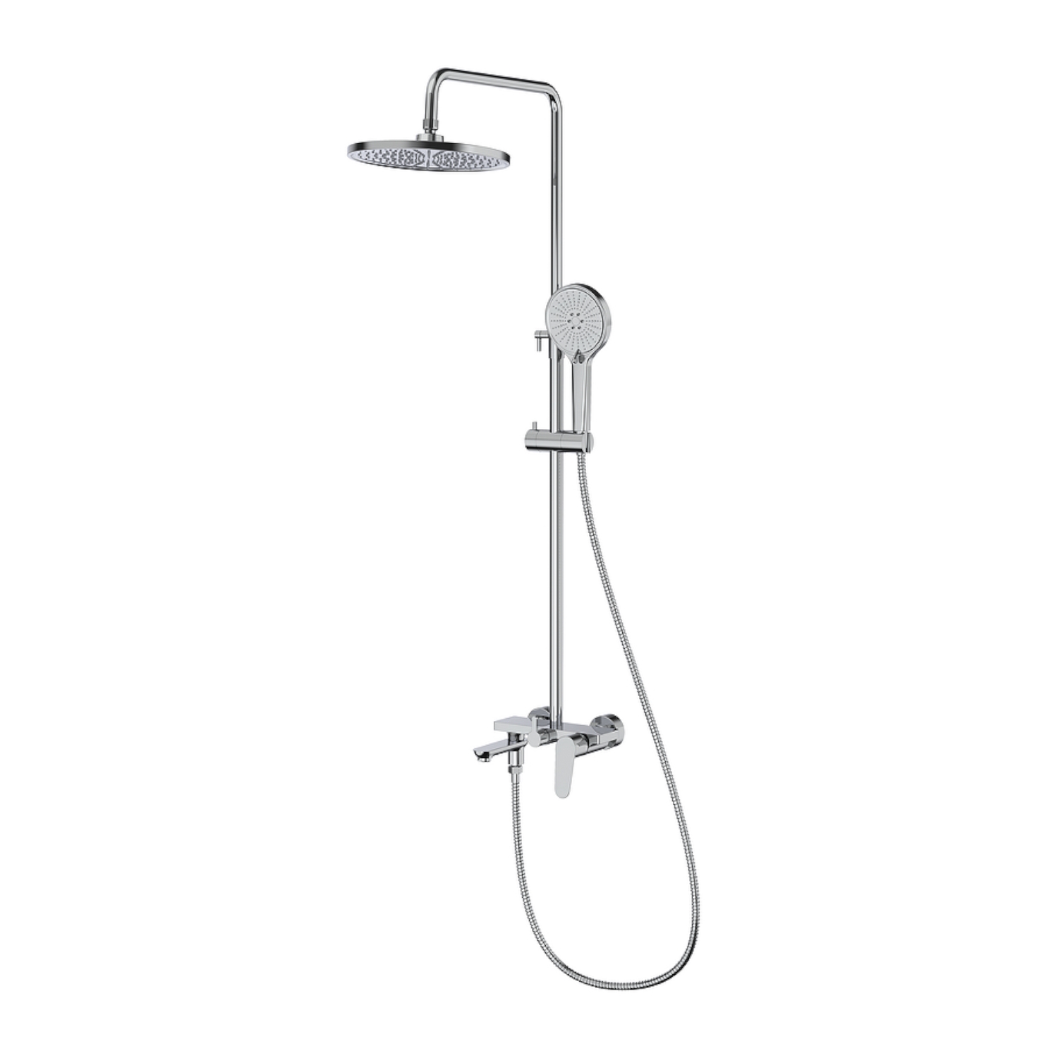 Душевая система Raglo R31.24. Цвет: хром. Материал: латунь. Управление: однорычажное. Механизм: керамический картридж. Излив: поворотный. Аэратор. Регулируемая по высоте душевая штанга: 770-1425 мм. Форма верхнего душа: круглая. Диаметр верхнего душа: 260 мм. Регулируемый по высоте держатель ручного душа. Высота ручного душа: 255 мм. Количество режимов струи ручного душа: 3. Переключение режимов ручного душа: флажковое. Отверстия для монтажа: 3. Стандарт подводки: G 1/2. Монтаж: на стену.