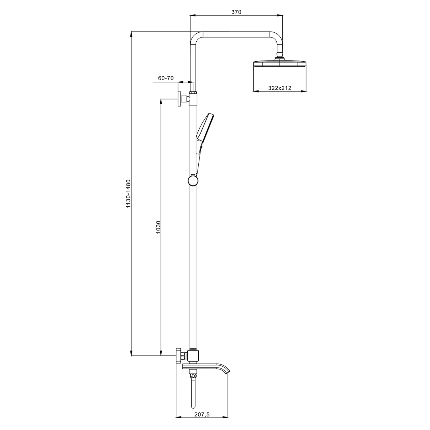 Размер верхнего душа,мм