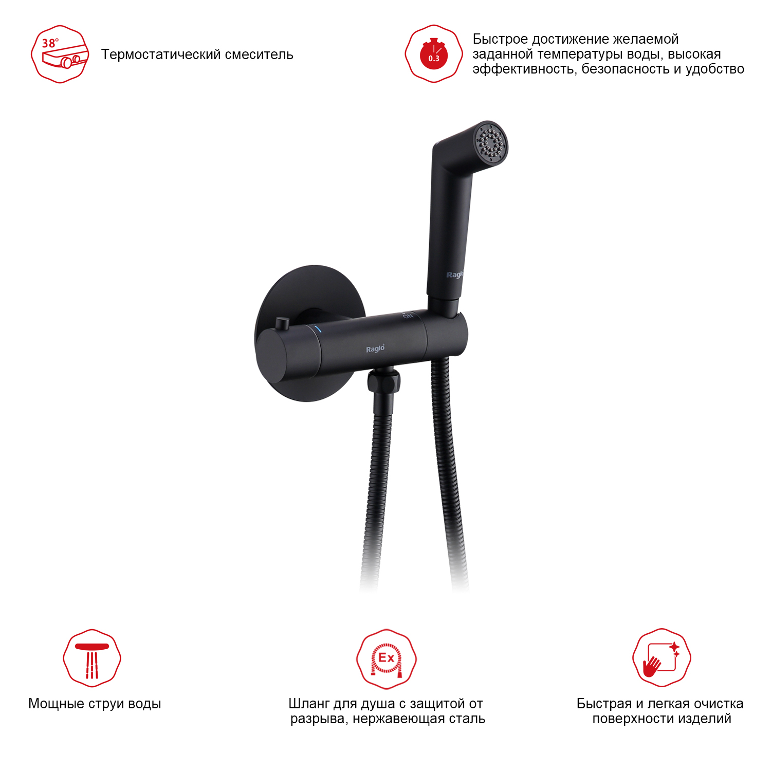 Смеситель с гигиеническим душем с термостатом - идеальное решение для вашей ванной комнаты! Гигиенический душ позволяет поддерживать высокий уровень гигиены и комфорта. Вы сможете легко поддерживать чистоту и свежесть в любое время дня. - Термостатическая система позволяет установить оптимальную температуру воды и поддерживать ее на протяжении всего душа. Вы больше не будете беспокоиться о резких перепадах температуры. Смеситель выполнен из высококачественных материалов, что гарантирует его долговечность и надежность.