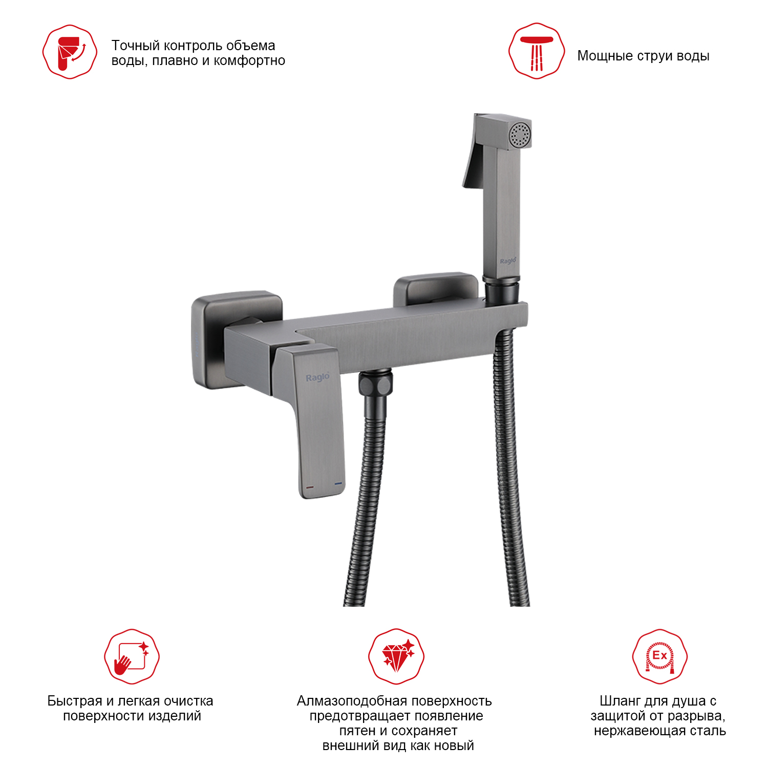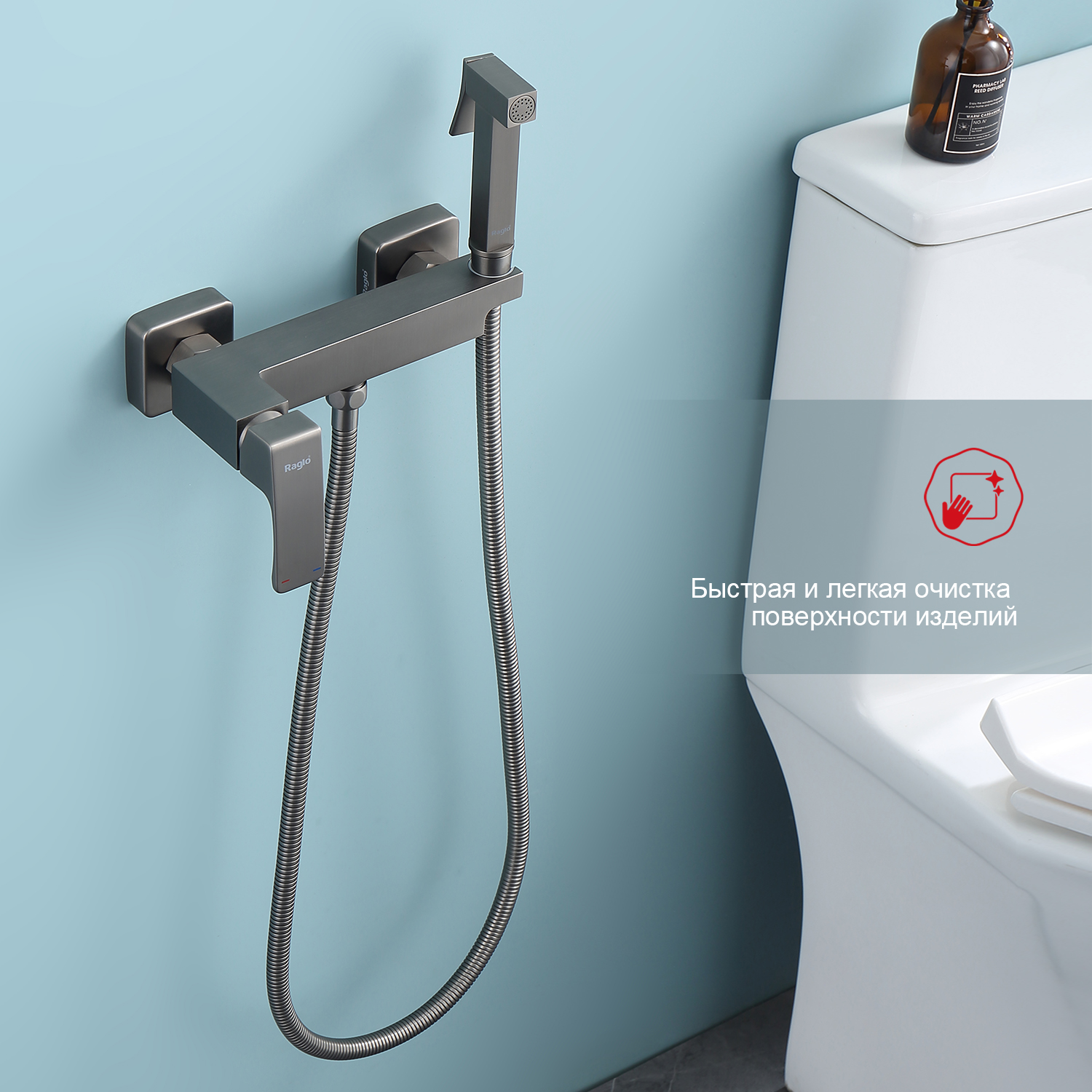 Смеситель с гигиеническим душем R01.51.09 предназначен для обеспечения гигиены в санузле. Крепления идут в комплекте, чтобы их не было видно все скрывается квадратной накладкой, на которой размещается смеситель. Гигиенический душ не занимает много места. При этом он добавляет комфорта в ежедневные процедуры. Для запуска потока воды достаточно немного нажать рычаг расположенный на лейке. Напор регулируется силой нажатия. Латунная душевая лейка работает в одном режиме. Высокопрочный душевой шланг - 1200 мм в оплетки двойного вальцевания с трубкой из синтетического каучука, вращающийся на 360 градусов. Гигиенический душ поставляется в фирменной индивидуальной упаковке.