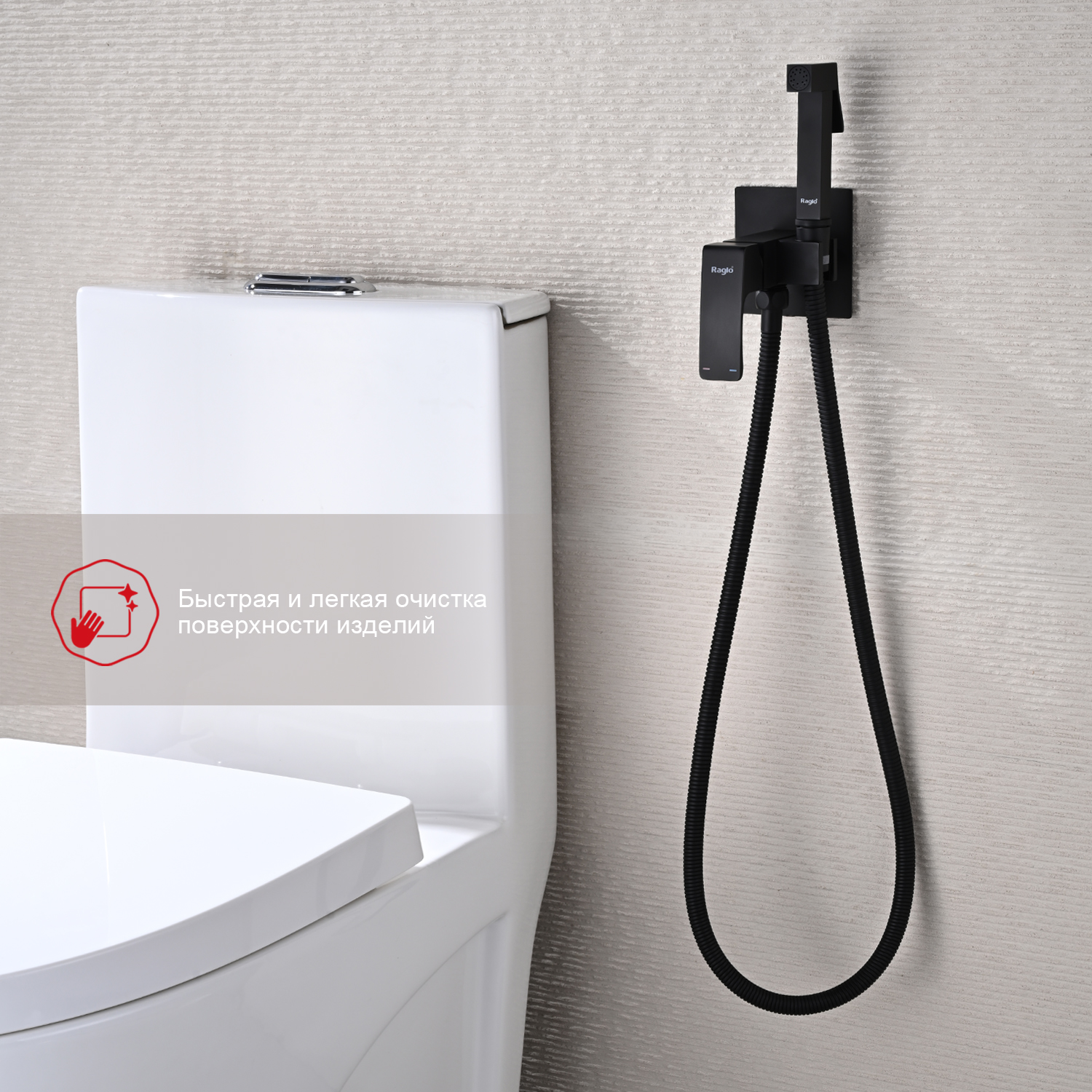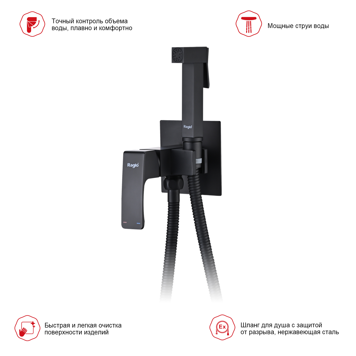 Качественный и современный смеситель с гигиеническим душем R01.52.06, одна рукоять для того, чтобы регулировать напор воды. Смеситель для биде устанавливается прямо внутрь стены, что позволит скрыть функциональные элементы, спрятать некоторые элементы монтажа. Латунная душевая лейка работает в одном режиме. Высокопрочный душевой шланг 1200 мм в оплетке двойного вальцевания с трубкой из синтетического каучука вращающийся на 360 градусов. Основной материал корпуса - латунь, проверенный временем материал, который обеспечивает идеальное напыление хромированного покрытия. Квадратная форма душ для биде делает его оригинальным и аутентичным.