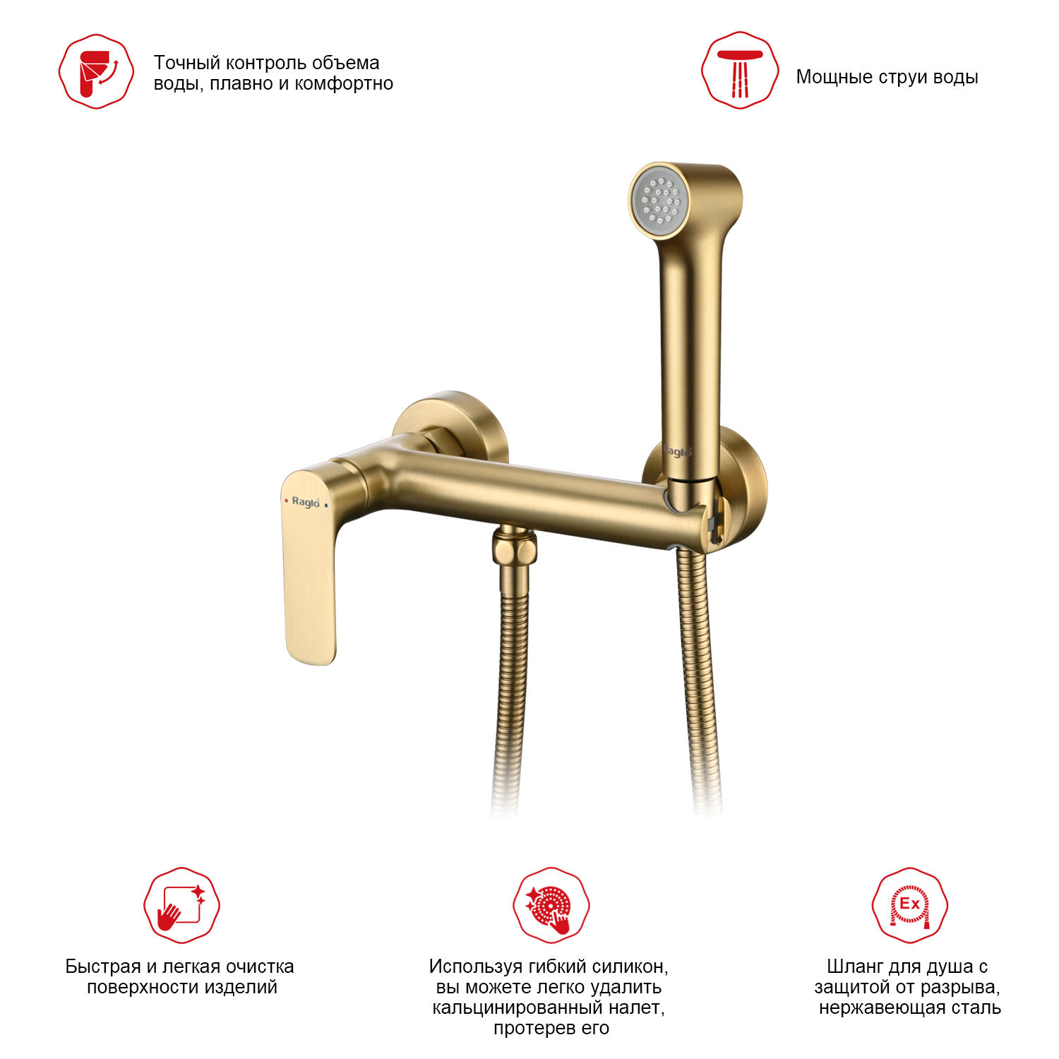 Гигиенический душ со смесителем Raglo R03.51.03, сатин золотой