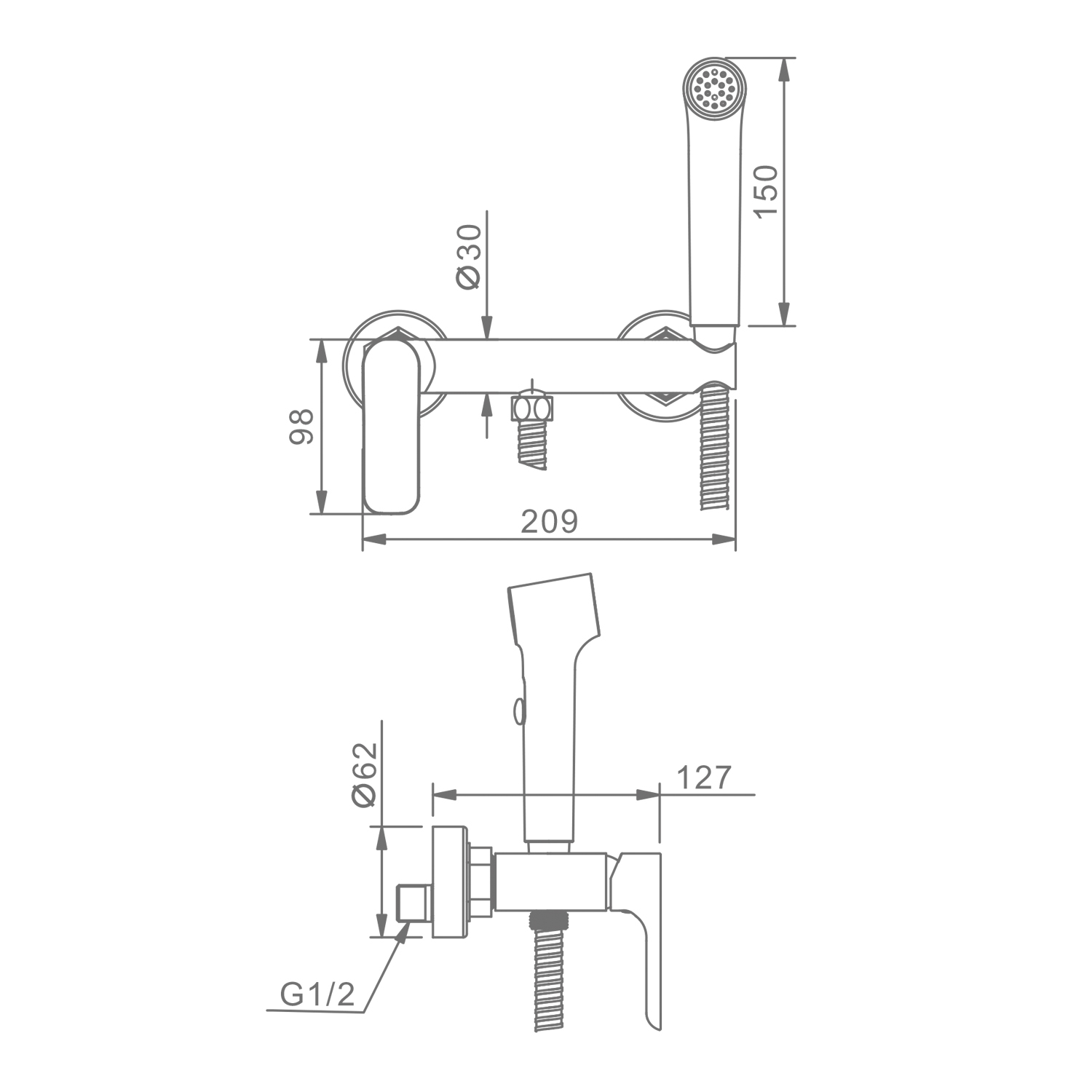 Гигиенический душ со смесителем Raglo R03.51.06, черный