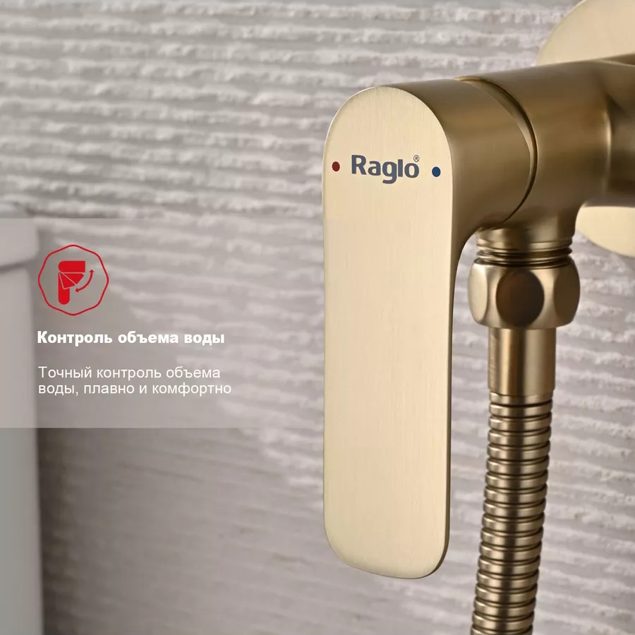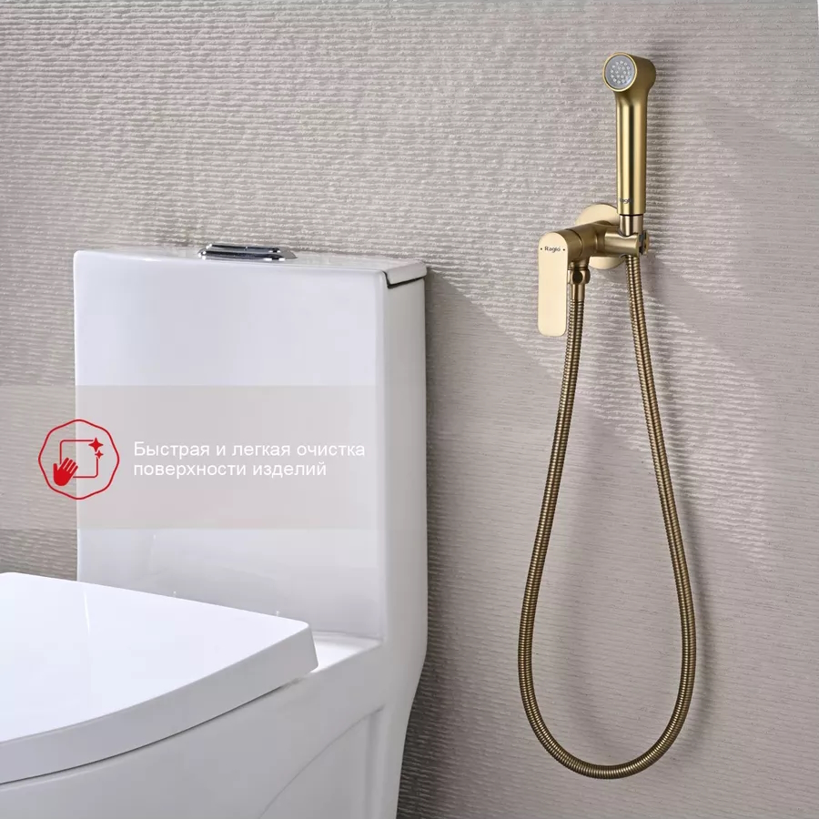 Гигиенический душ со смесителем встраиваемый Raglo R03.52.03, сатин золотой