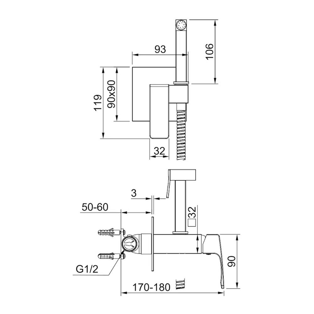 Качественный и современный смеситель с гигиеническим душем R01.52.23, одна рукоять для того, чтобы регулировать напор воды. Смеситель для биде устанавливается прямо внутрь стены, что позволит скрыть функциональные элементы, спрятать некоторые элементы монтажа. Латунная душевая лейка работает в одном режиме. Основной материал корпуса - латунь, проверенный временем материал, который обеспечивает идеальное напыление хромированного покрытия. Квадратная форма душ для биде делает его оригинальным и аутентичным. Взрывозащищенный шланг 1.2м. Керамический картридж Sedal® 25 мм.