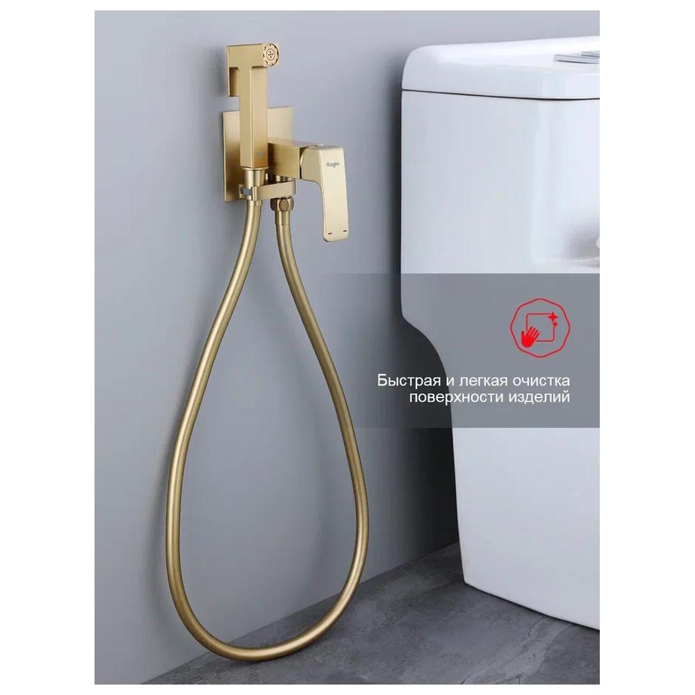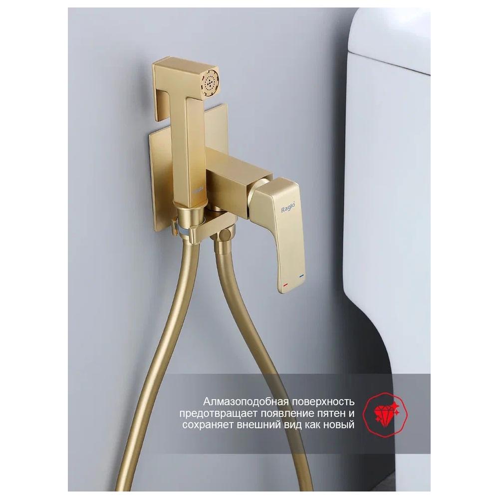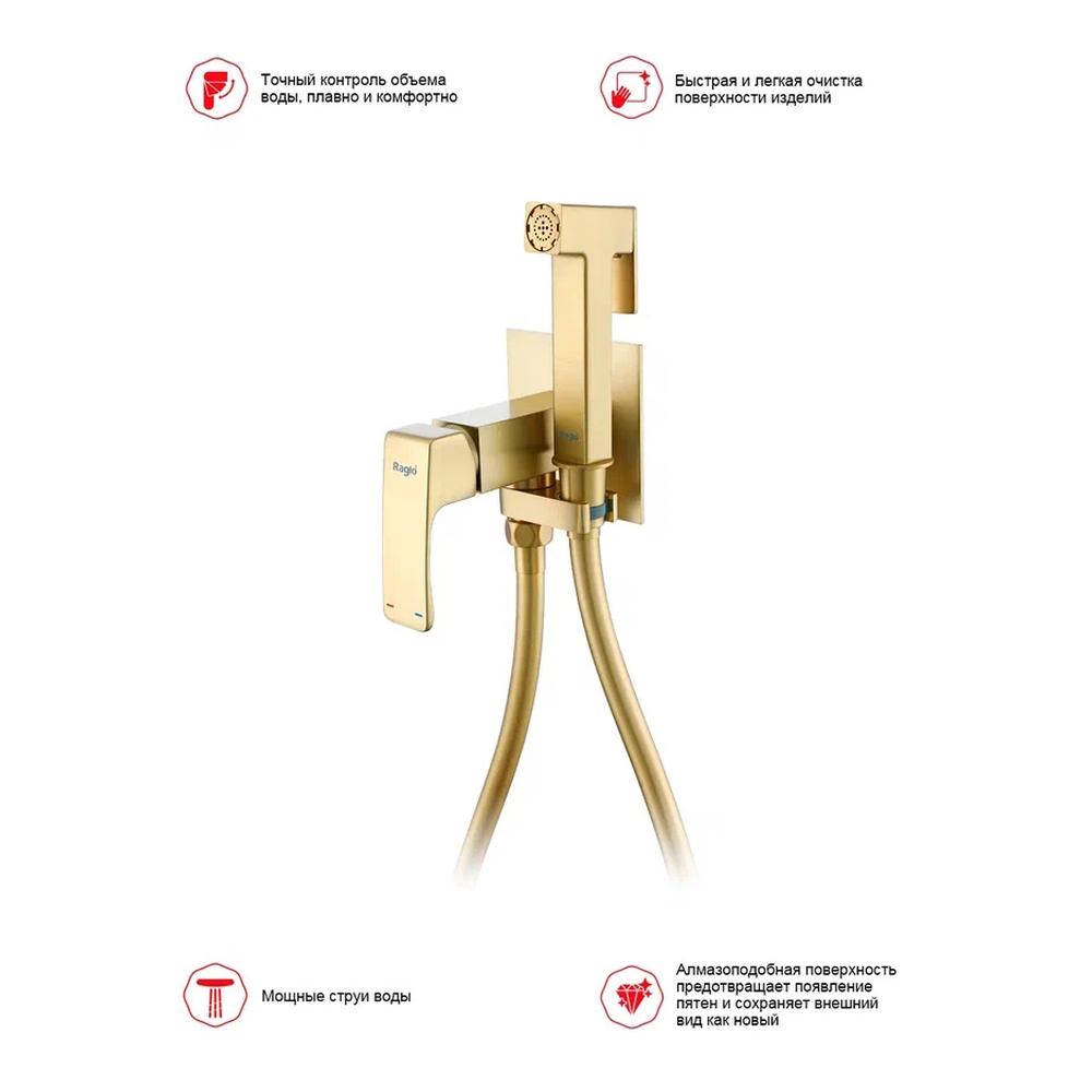 Гигиенический душ со смесителем встраиваемый Raglo R02.54.03, сатин золотой