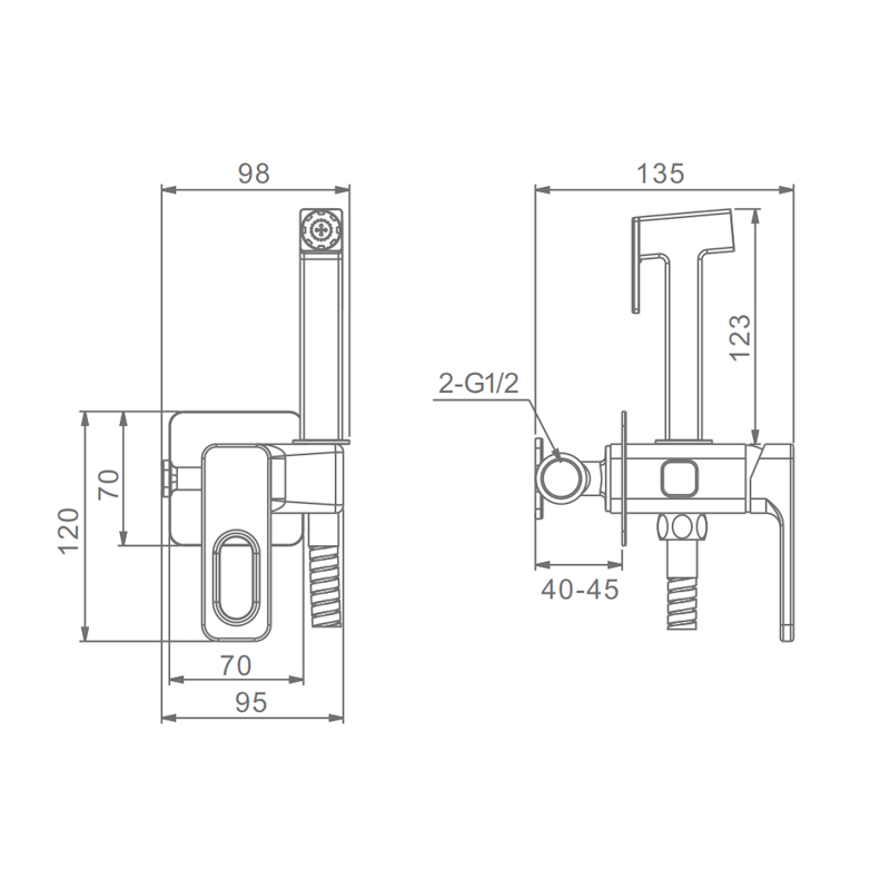 Гигиенический душ со смесителем представляет собой удобный альтернативный вариант стандартному биде. Шланг обладает длиной 120 см что вполне достаточно для комфортного использования. Душевой шланг имеет металлическую оплетку, что обеспечивает его прочность и защиту от перекручивания. Лейка для гигиенического душа хорошо держится в руке и обеспечивает комфорт всех проводимых манипуляций с использованием биде для унитаза. В комплекте встраиваемый смеситель (внутренняя часть в комплекте), лейка гигиенического душа, держатель лейки и душевой шланг. Устройство оснащено керамическим картриджем и рычажным управлением, что гарантирует плавную и точную регулировку воды. Присоединительный размер - G 1/2, предназначен для одного потребителя. Защита от обратного потока и ограничение температуры отсутствуют.