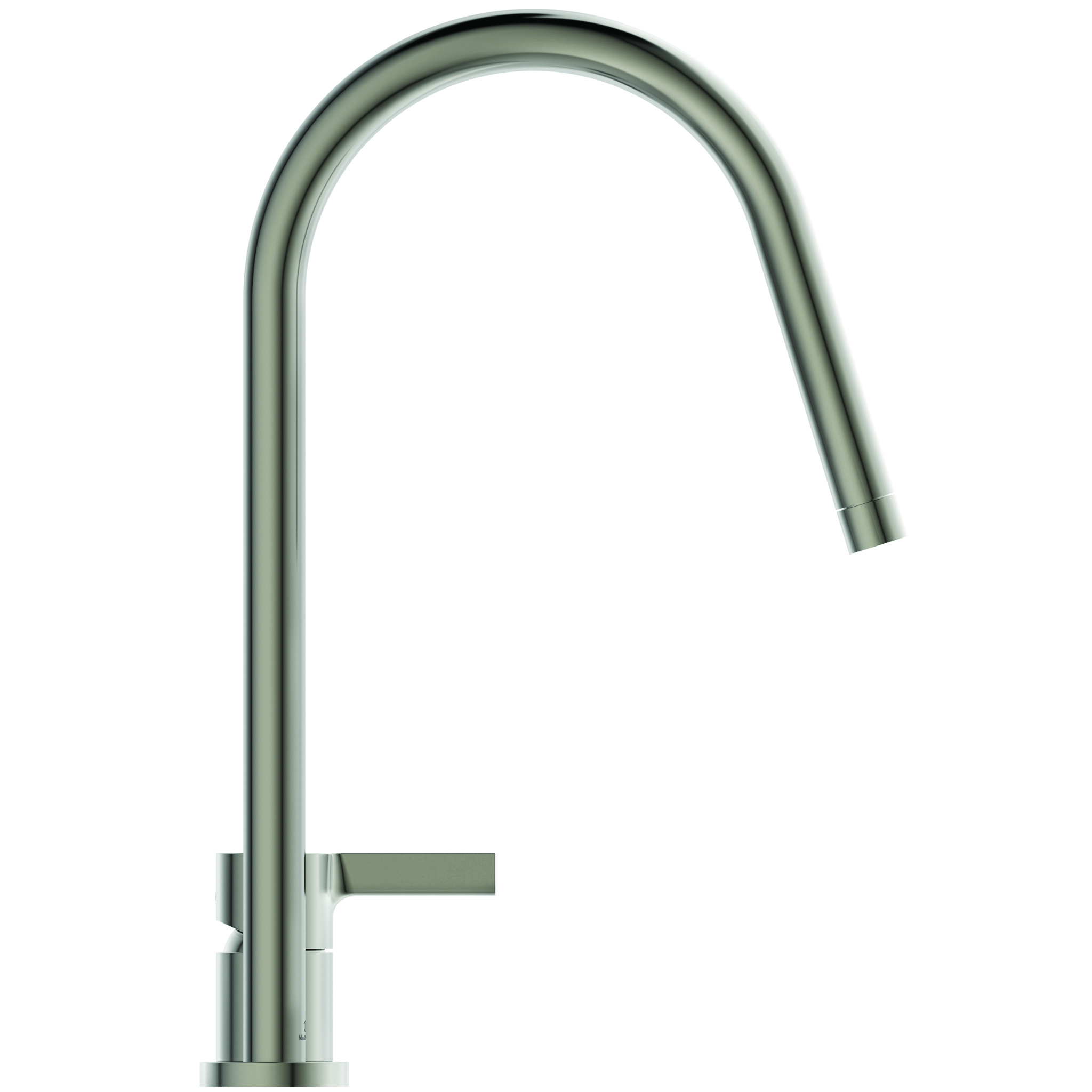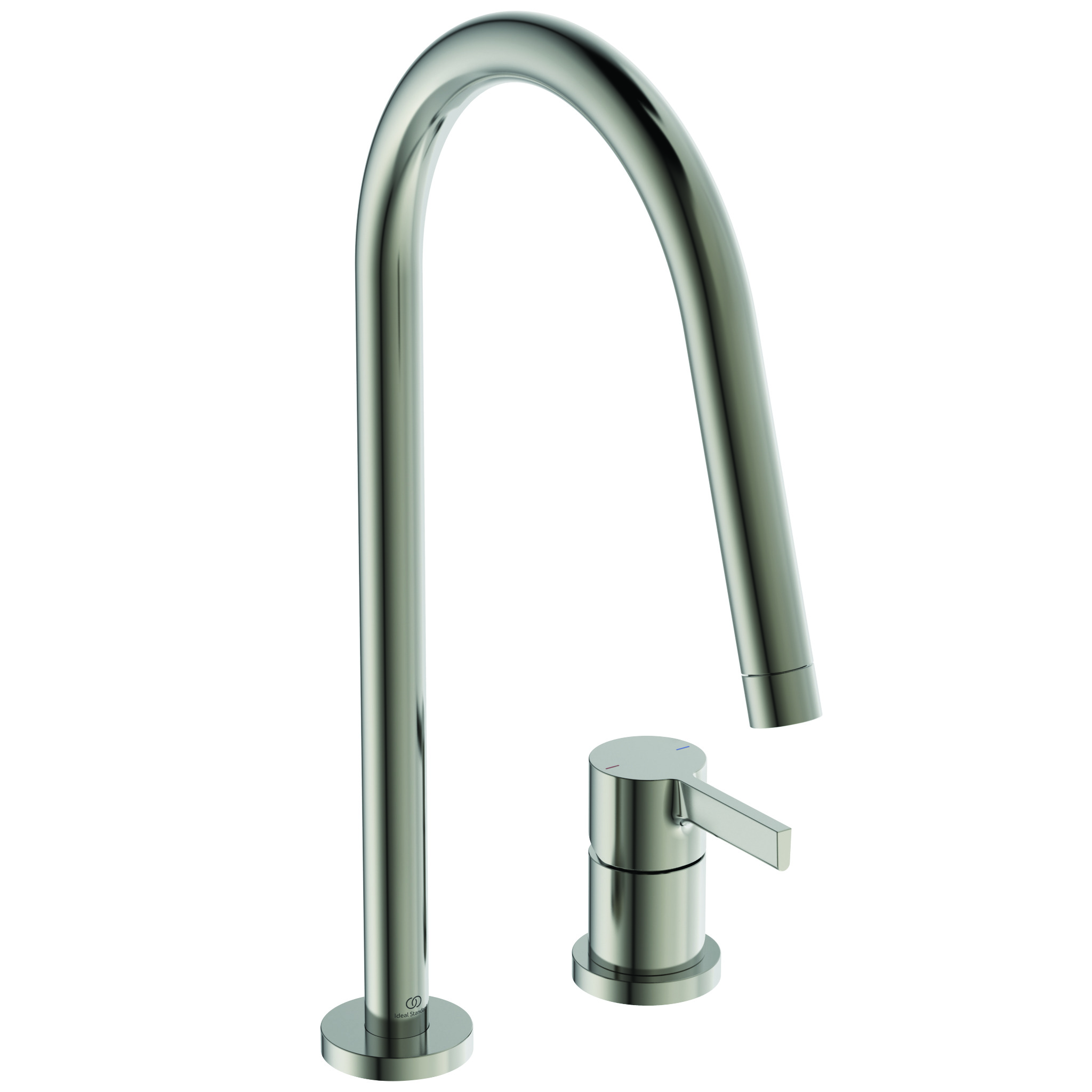 GUSTO Смеситель для кухонной мойки с высоким трубчатым круглым изливом, под 2 отверстия, излив R-типа, поворотный на 360°, керамический картридж FirmaFlow 28 мм с функцией HWTC (ограничение максимальной температуры горячей воды), металлическая рукоятка с индикаторами горячей / холодной воды, аэратор Perlator, гибкая подводка G3/8"