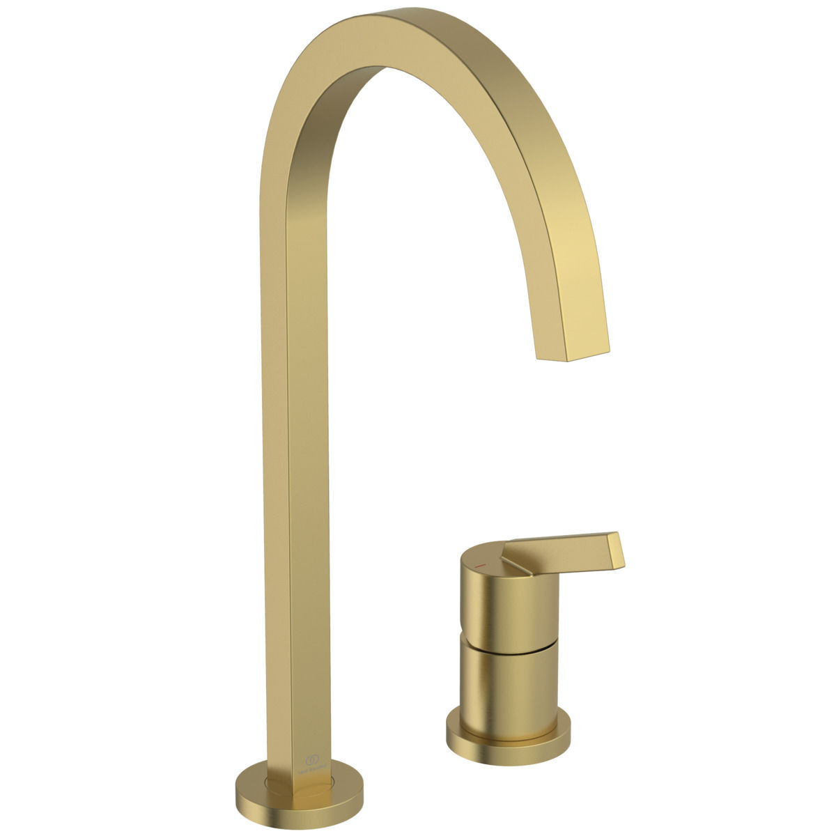 GUSTO Смеситель для кухонной мойки с высоким трубчатым квадратным изливом, под 2 отверстия, излив R-типа, поворотный на 360°, керамический картридж FirmaFlow 28 мм с функцией HWTC (ограничение максимальной температуры горячей воды), металлическая рукоятка с индикаторами горячей / холодной воды, аэратор Cache M16.5x1, гибкая подводка G3/8"