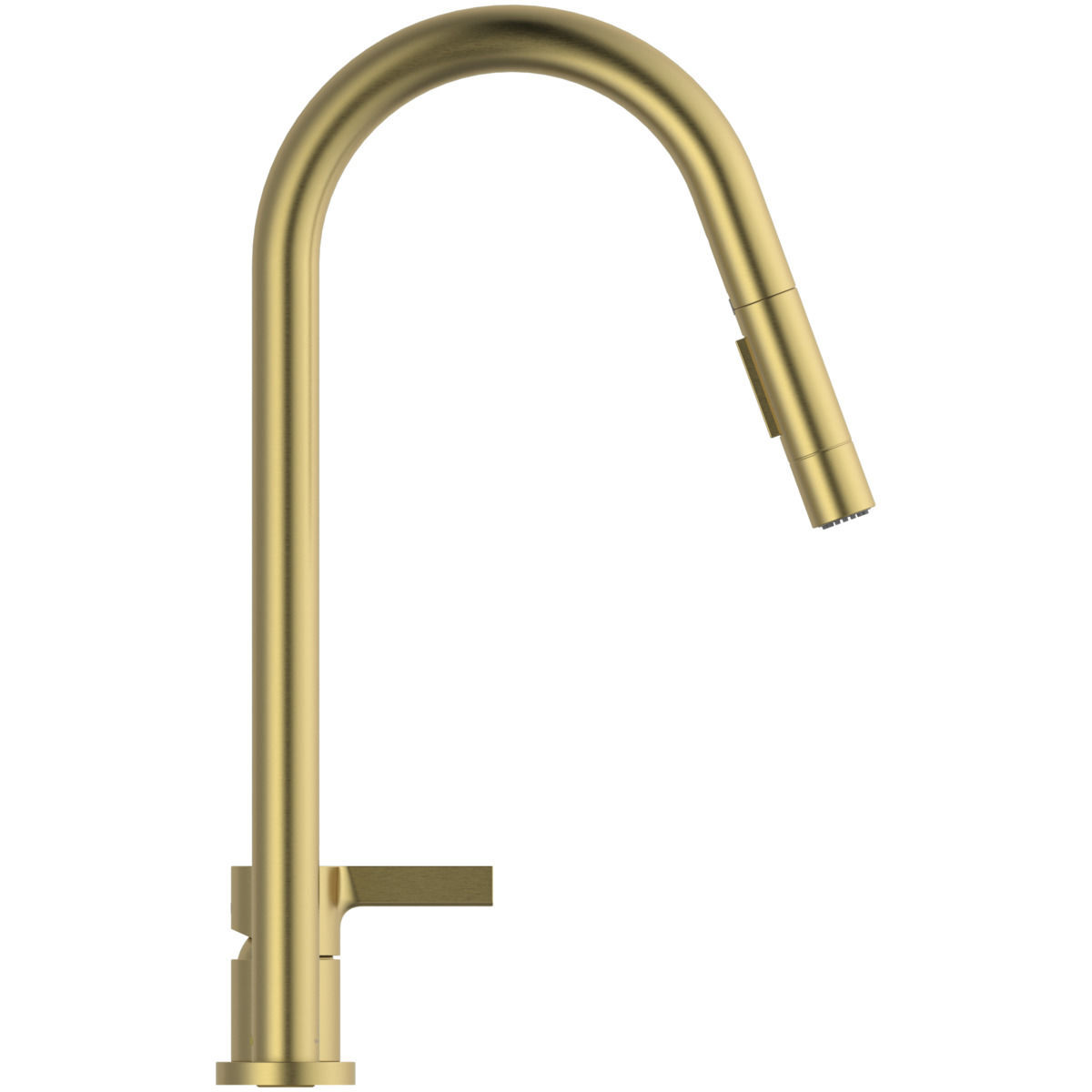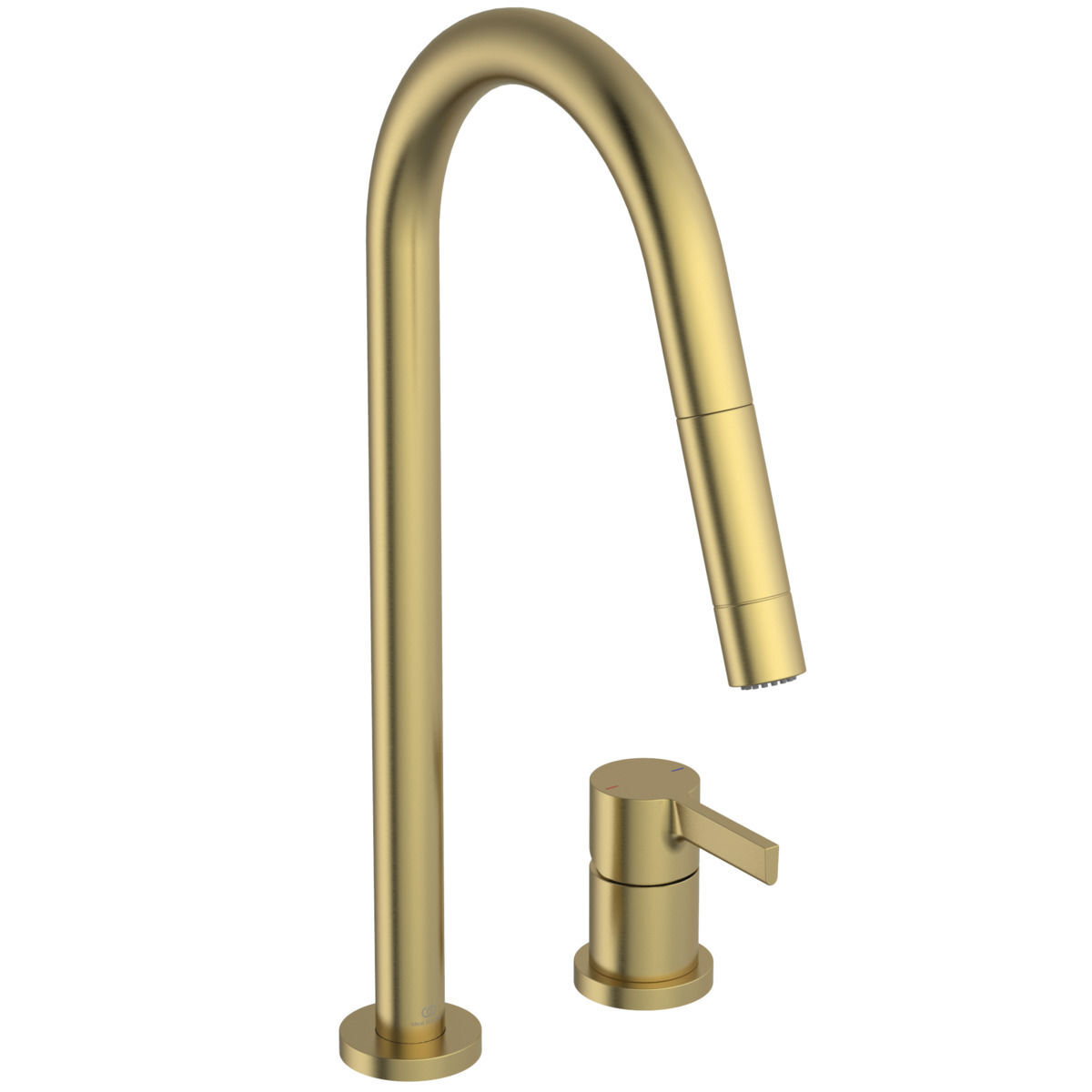 GUSTO Смеситель для кухонной мойки с высоким вытяжным трубчатым круглым изливом, под 2 отверстия, излив R-типа, поворотный на 360°, керамический картридж FirmaFlow 28 мм с функцией HWTC (ограничение максимальной температуры горячей воды), металлическая рукоятка с индикаторами горячей / холодной воды, аэратор Perlator, гибкая подводка G3/8". 2-функциональная вытяжная лейка