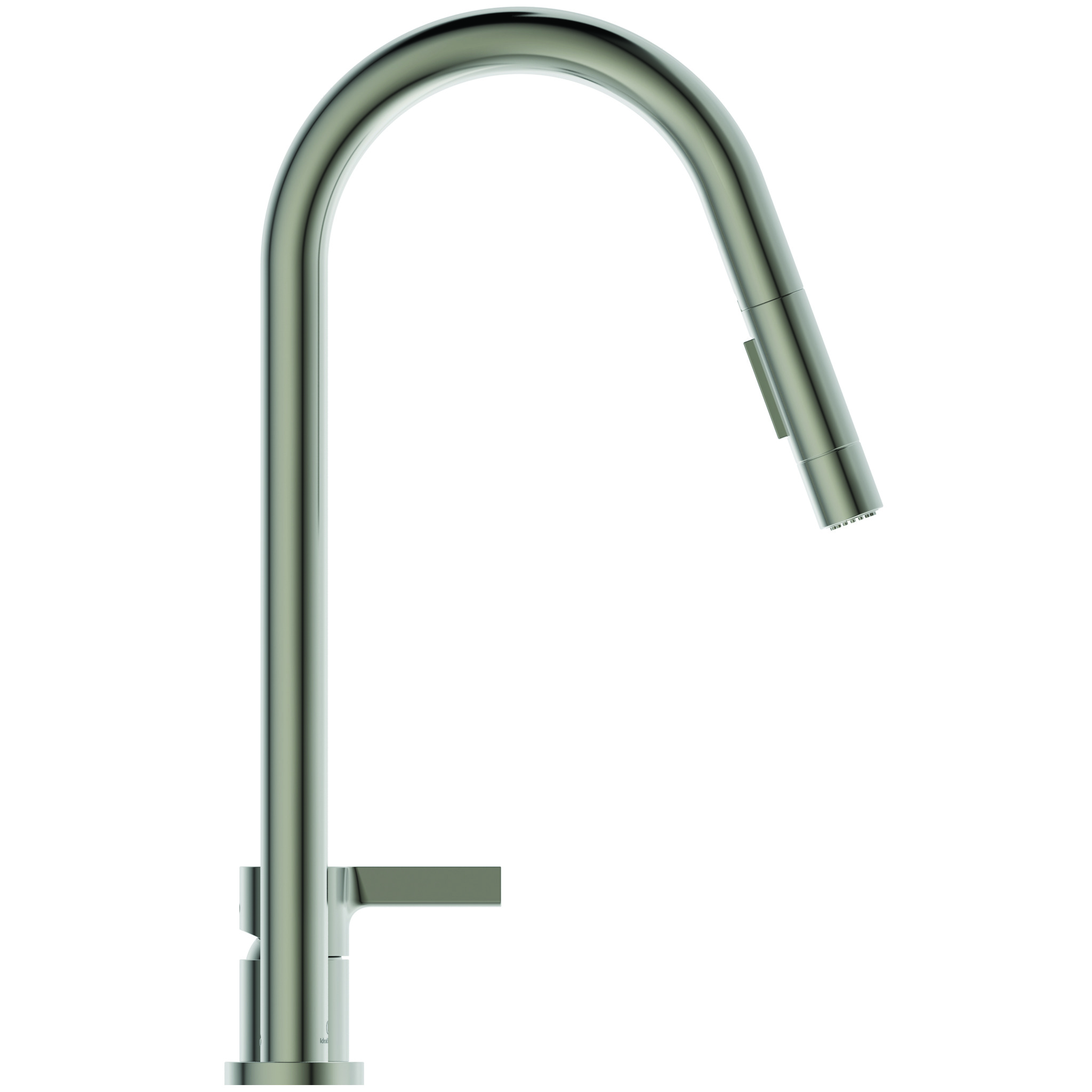 GUSTO Смеситель для кухонной мойки с высоким вытяжным трубчатым круглым изливом, под 2 отверстия, излив R-типа, поворотный на 360°, керамический картридж FirmaFlow 28 мм с функцией HWTC (ограничение максимальной температуры горячей воды), металлическая рукоятка с индикаторами горячей / холодной воды, аэратор Perlator, гибкая подводка G3/8". 2-функциональная вытяжная лейка