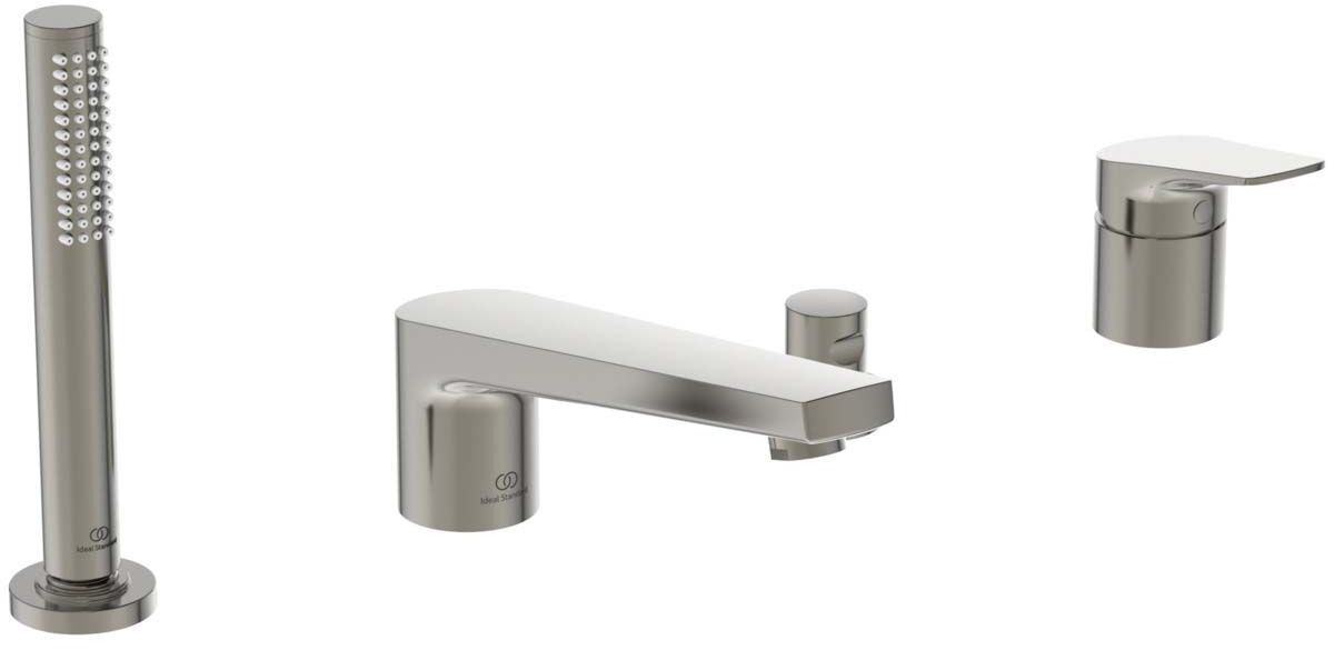 La Dolce Vita Набортный смеситель для ванны/душа под 4 отверстия, керамический картридж FirmaFlow 38 мм, с функцией HWTC (ограничение максимальной температуры горячей воды), без функции CLICK, литой излив, с душевым комплектом (металлический ручной душ Stick, шланг для душа 1750 мм Idealflex), металлическая рукоятка без индикаторов горячей / холодной воды, автоматическое переключение, аэратор M24x1
