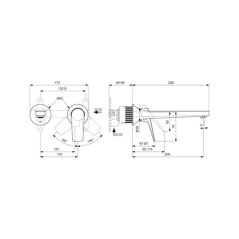 La Dolce Vita Встраиваемый смеситель для раковины, комплект №2 (внешняя часть), керамический картридж 28 мм, с функцией HWTC (ограничение максимальной температуры горячей воды), литой излив 210 мм, металлическая накладка, металлическая рукоятка без индикаторов горячей / холодной воды, аэратор с ограничением потока 5 л/мин, для монтажа с комплектом №1 A1313NU (встраиваемая часть)