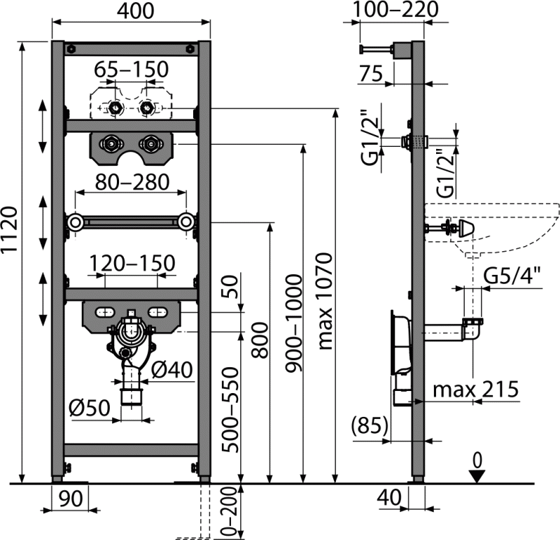 Монтажная рама для умывальника со встроенным сифоном AlcaPlast A104AVS/1120