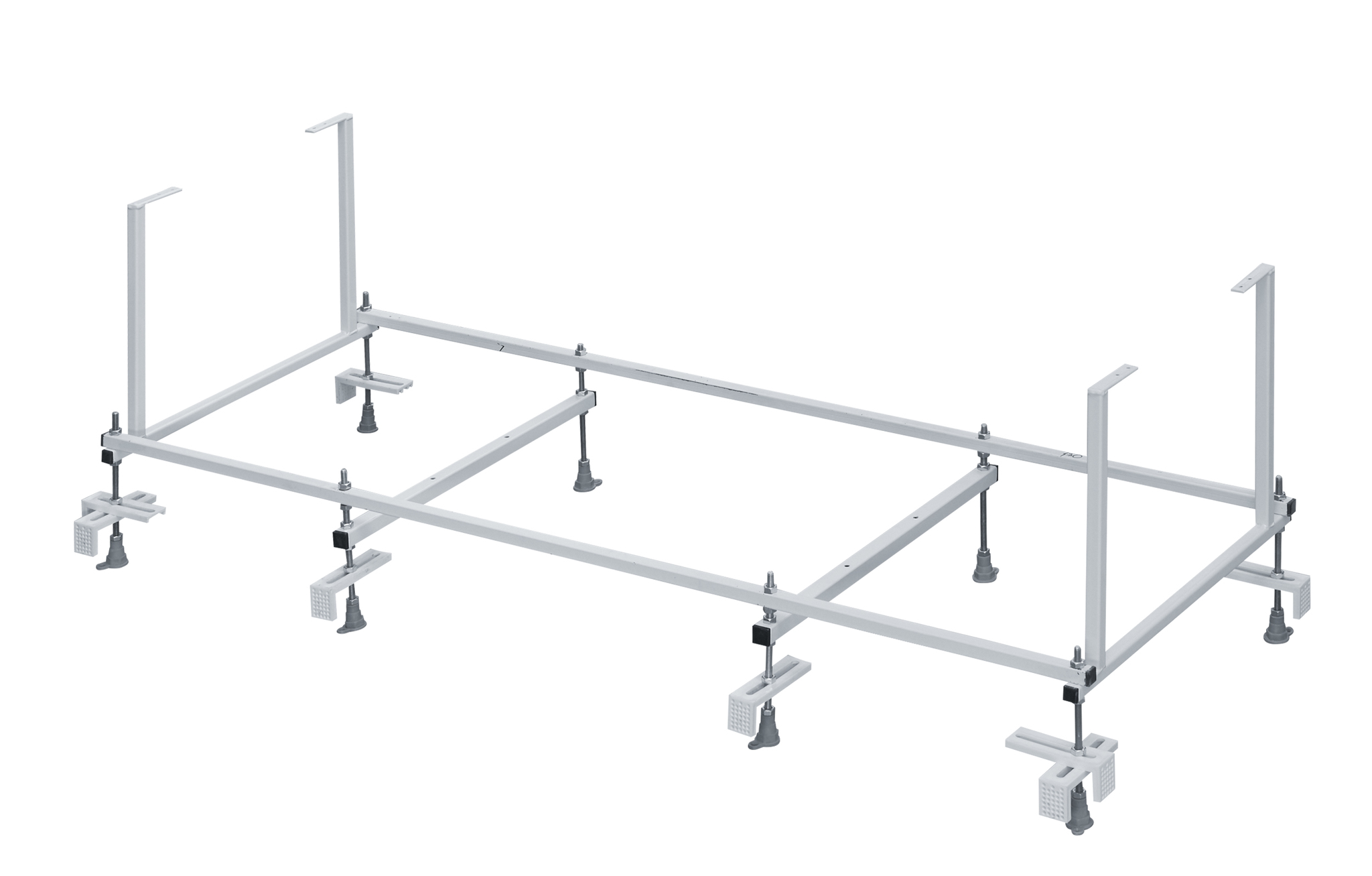 В состав монтажного комплекта входит каркас, слив-перелив, крепления ванны к стене и крепления фронтальной панели. Для изготовления каркаса для акриловой ванны SANTEK используется профиль из оцинкованной стали. Данный профиль не требует окрашивания, оцинкованная сталь не подвергается коррозии. Каркас на 8 опорах с регулируемыми по высоте ножками обеспечивает устойчивость и защиту от переворачивания. Слив-перелив протестирован, отвечает всем требования к эксплуатации. Крепления ванны к стене надежно фиксируют ванну в одном положении.