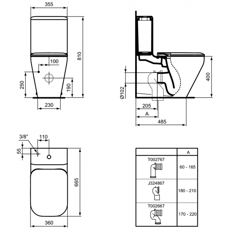 TONIC II AquaBlade® Напольный пристенный унитаз (чаша) для монтажа с бачком, глубокий смыв, универсальный выпуск, с крепежом TT0257919, с сидением и крышкой с функцией плавного закрытия K7065, дюропласт