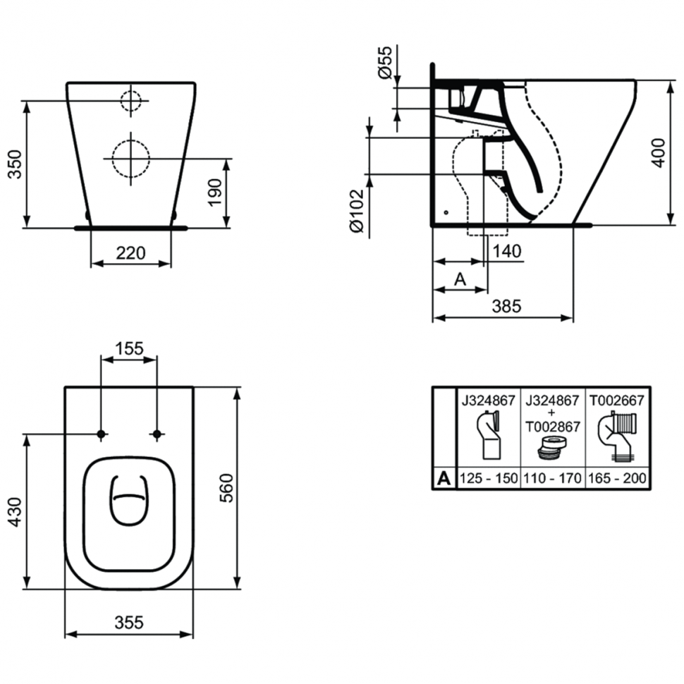 TONIC II AquaBlade® Напольный пристенный унитаз-соло(чаша), глубокий смыв, универсальный выпуск, с крепежом TT0257919, с сидением и крышкой с функцией плавного закрытия K7065, дюропласт