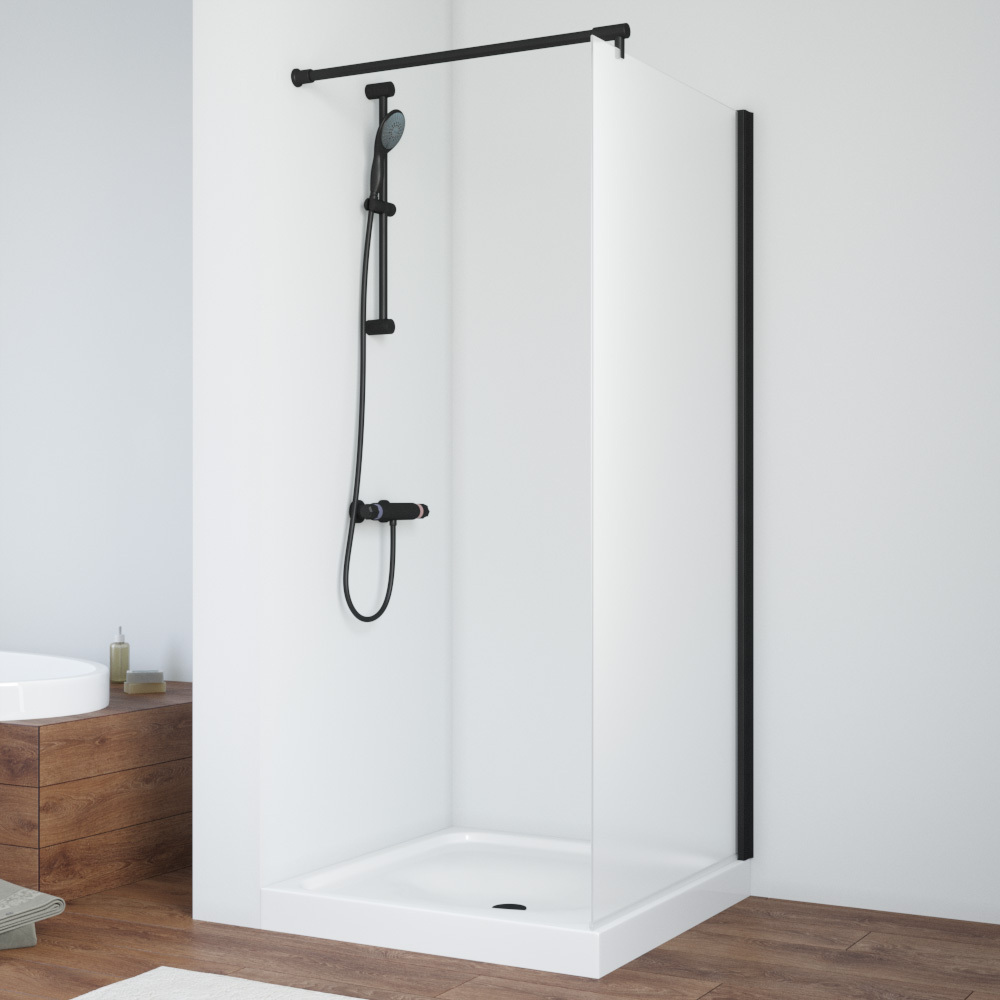 Неподвижная перегородка Vegas Glass EAF LUX профиль черный матовый, стекло сатин