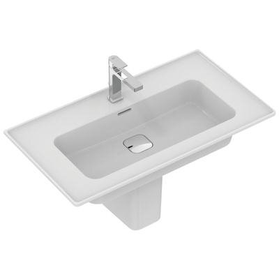 STRADA II Vanity Двойной умывальник 124 см с 2-мя отверстиями под смесители, для монтажа с мебелью, полуколоннами или дизайн-сифонами, с отверстиями перелива (щелевого типа), с керамическими накладками слива (T854601). Без крепежа