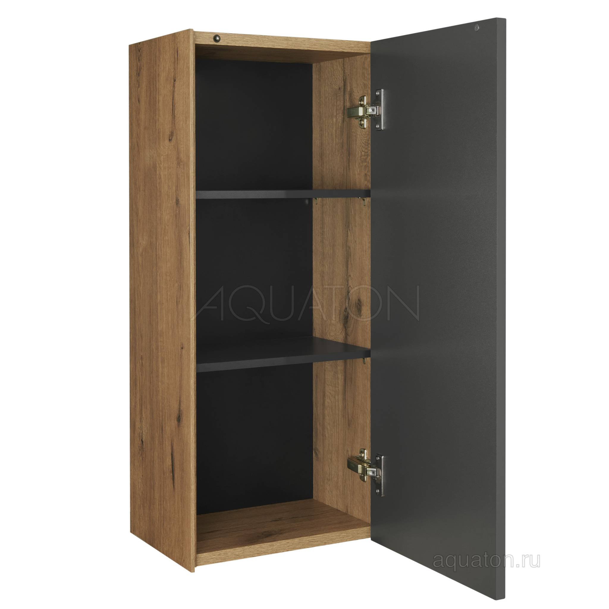Дополняет коллекцию предметов мебели Сохо шкафчик в созвучном дизайне: боковые стенки ЛВДСП Дуб веллингтон, фасад - плита МДФ в пленке с покрытием soft touch в цвете антрацит. Внутри две регулируемые полки из ламинированной влагостойкой ДСП в цвете антрацит - перекликаются с внутренним оформлением ящиков тумб коллекции Сохо. Навесной шкафчик имеет как левую, так и правую ориентации - достаточно лишь перевернуть изделие на 180 градусов. При желании также можно собрать полноценную колонну из двух навесных шкафов.