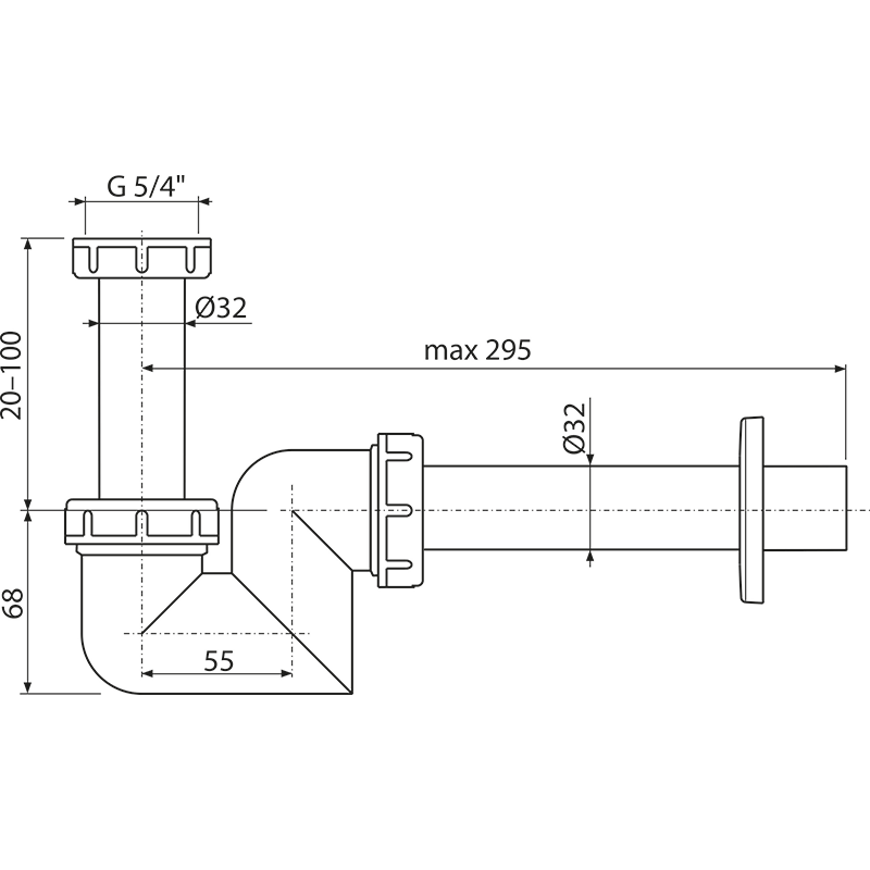 Сифон для умывальника и биде, пластик 32 AlcaPlast A45F-DN32