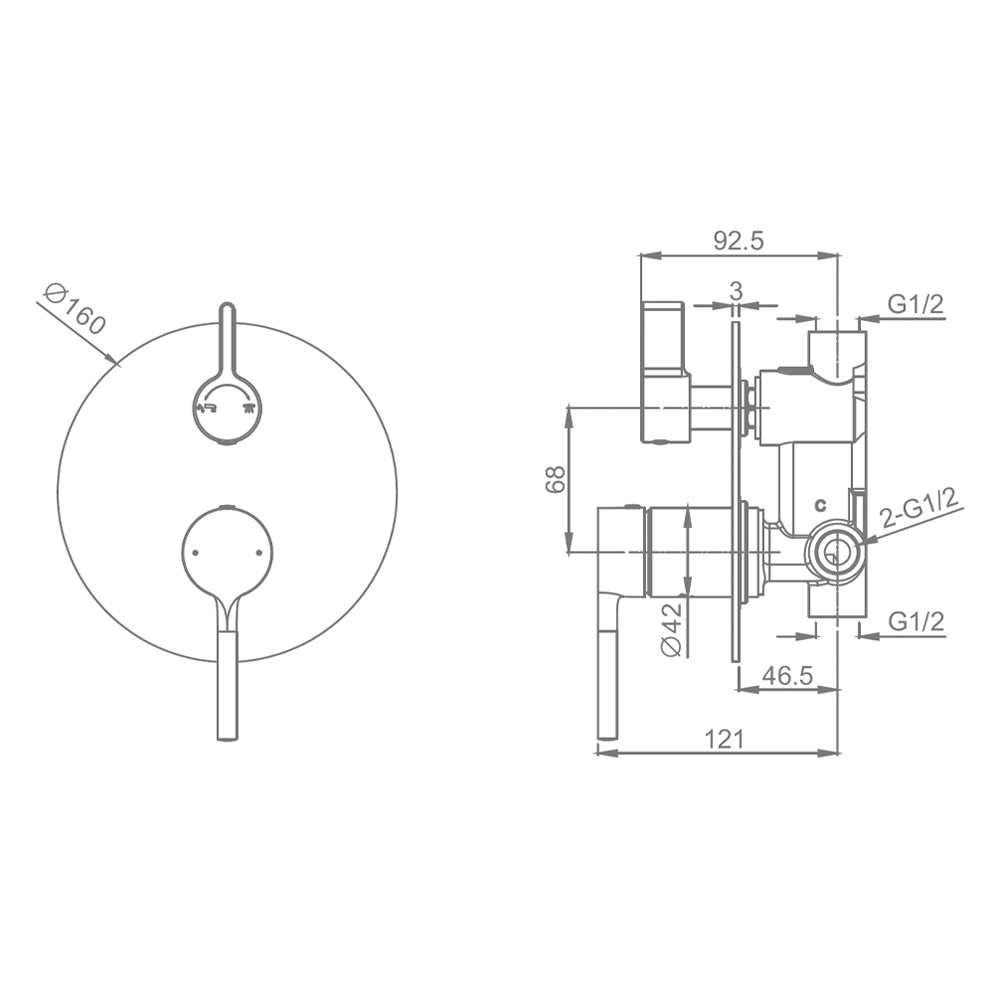 Корпус смесителя + внутренняя часть Raglo R20.272.09, 2-режима, графит. Встраиваемый монтаж. Керамический картридж 35 мм. Управление рычажное.