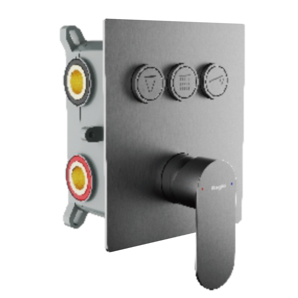 Корпус смесителя + внутренняя часть Raglo R50.273.09, 3-режима, графит. Встраиваемый монтаж. Керамический картридж 40 мм. Управление рычажное + кнопочное.