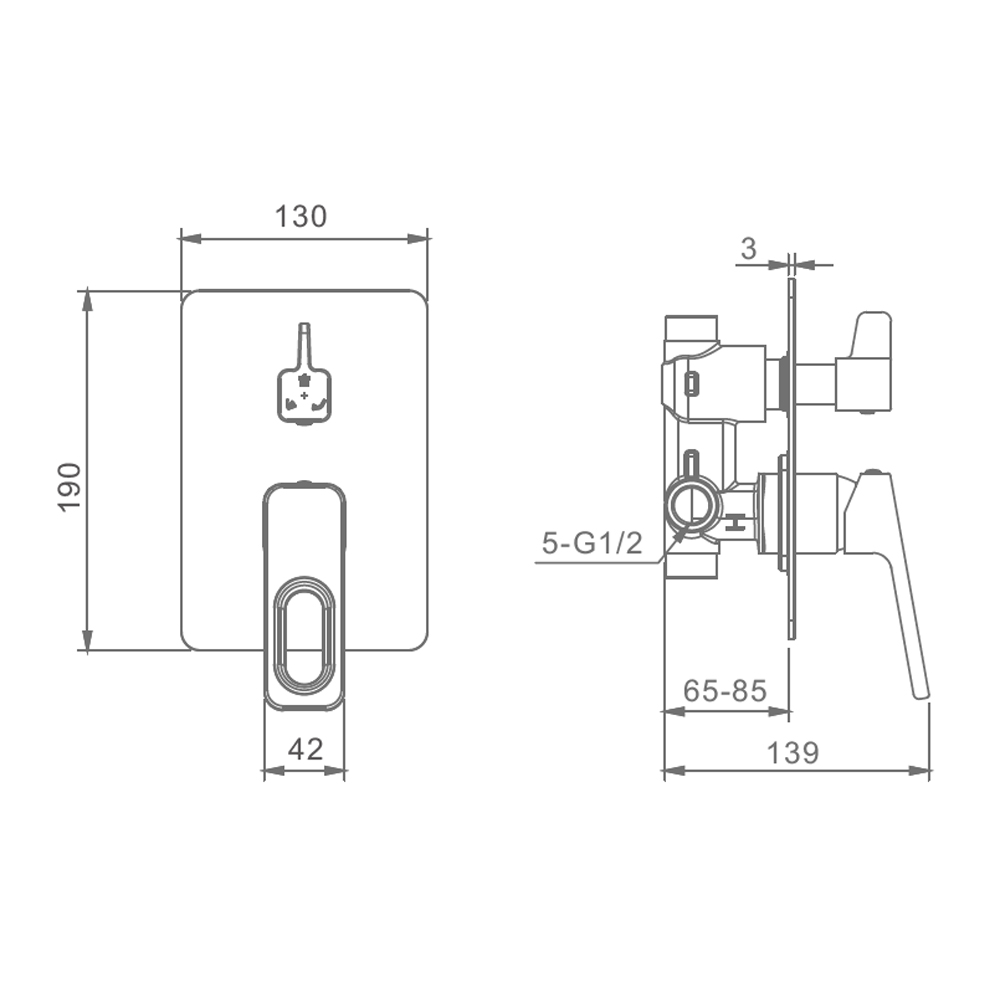 Корпус смесителя + внутренняя часть Raglo R51.273.03, 3-режима, золотой сатин (брашированное золото). Встраиваемый монтаж. Керамический картридж 35 мм.Рычажное рычажное + кнопочное.