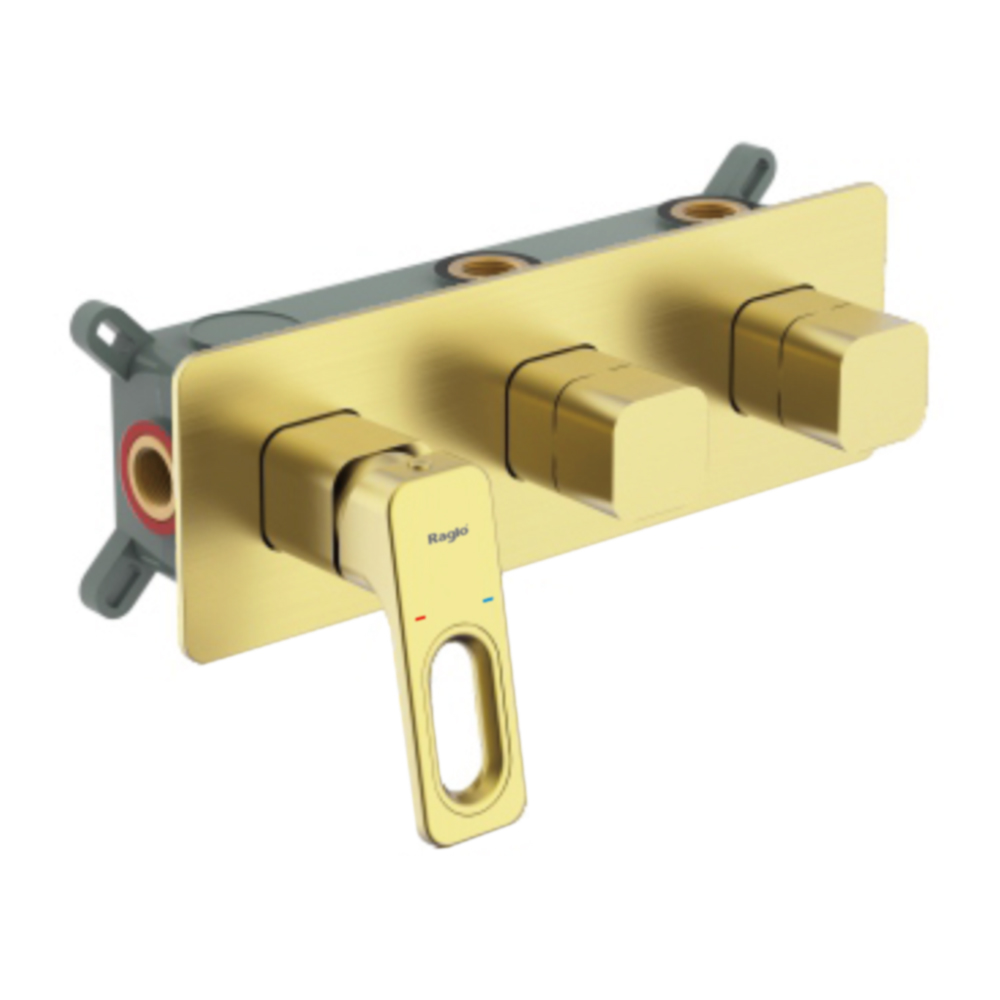 Корпус смесителя + внутренняя часть Raglo R51.274.03, 4-режима, золотой сатин (брашированное золото). Встраиваемый монтаж. Керамический картридж 35 мм.Рычажное рычажное + кнопочное.