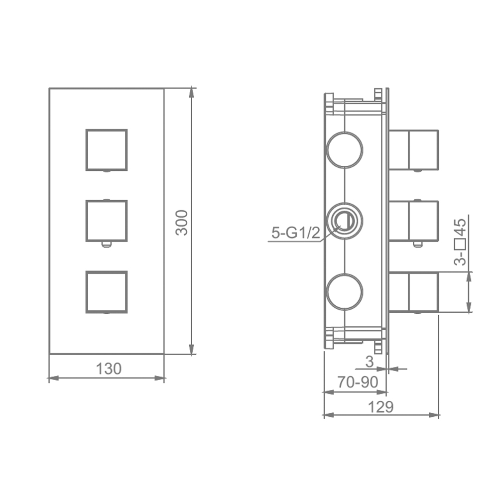 Корпус смесителя + внутренняя часть Raglo R02.263.09, 3-режима, графит. Встраиваемый монтаж. Термостатический картридж. Управление вентильное.
