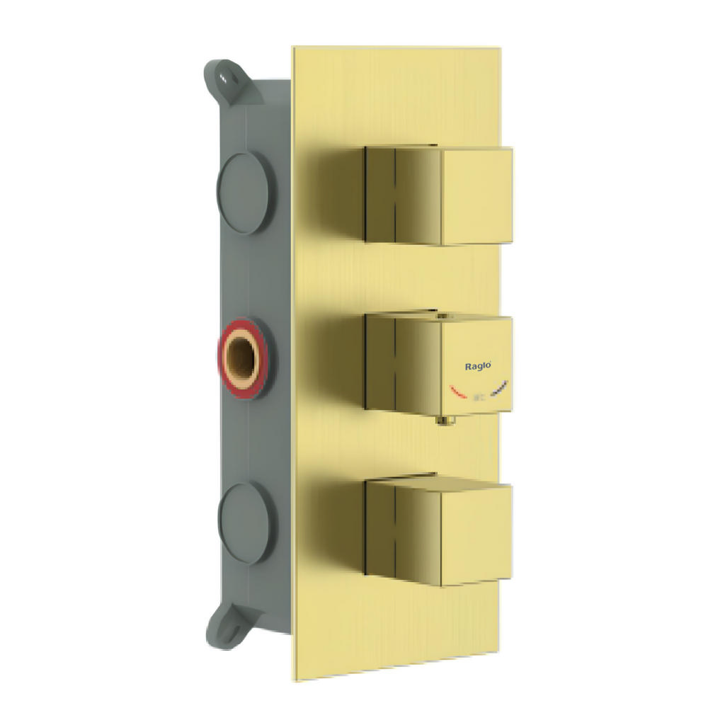 Корпус смесителя + внутренняя часть Raglo R02.263, 3-режима, золотой сатин (брашированное золото). Встраиваемый монтаж. Термостатический картридж. Управление вентильное.