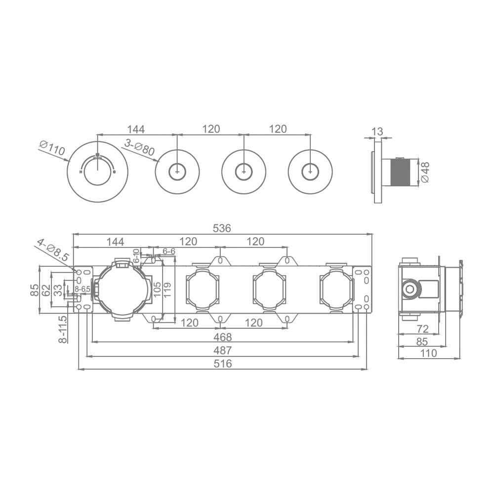 Корпус смесителя + внутренняя часть Raglo R20.263, 3-режима, хром. Встраиваемый монтаж. Термостатический картридж. Управление вентильное + кнопочное.