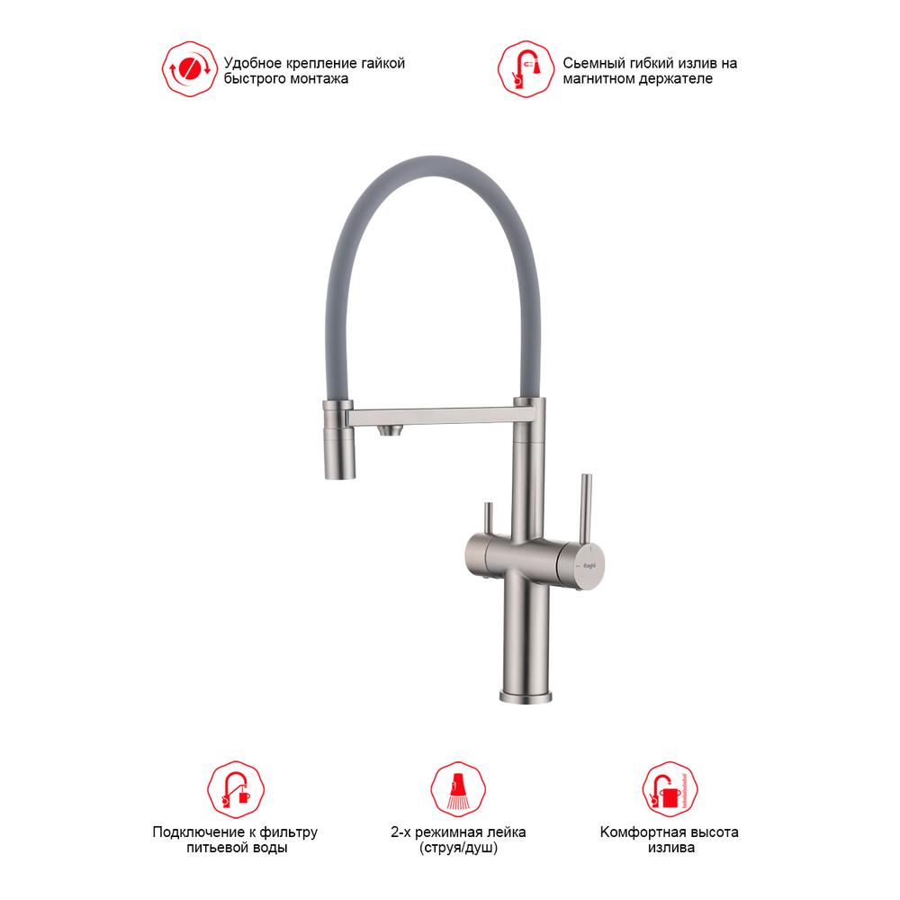 Смеситель для кухни с подключением фильтра Raglo R20.63.05, сатин