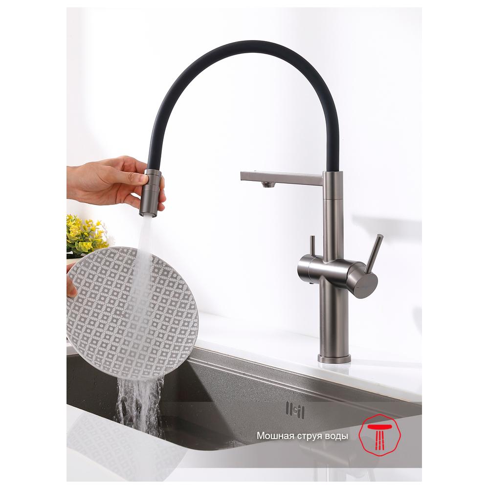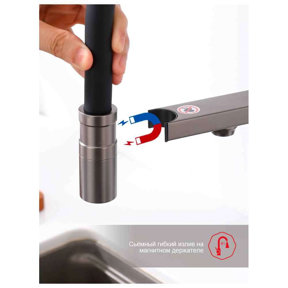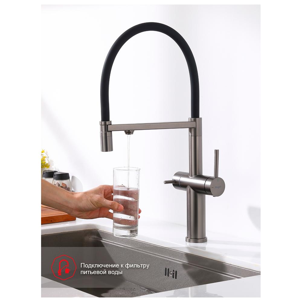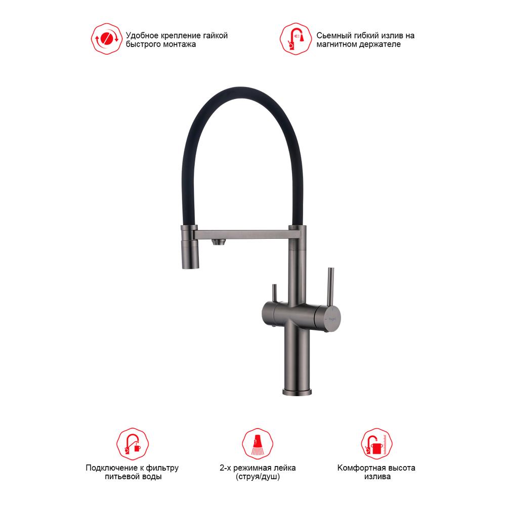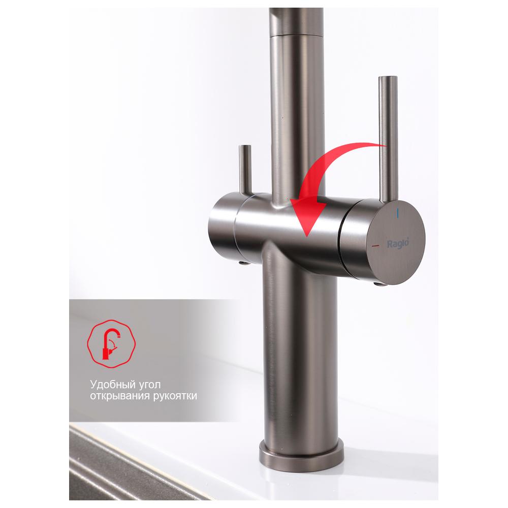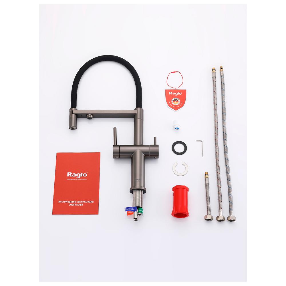 Смеситель Raglo для кухни со съемным гибким изливом, с магнитным фиксатором излива, с подключением фильтра питьевой воды. Крепление на гайке.