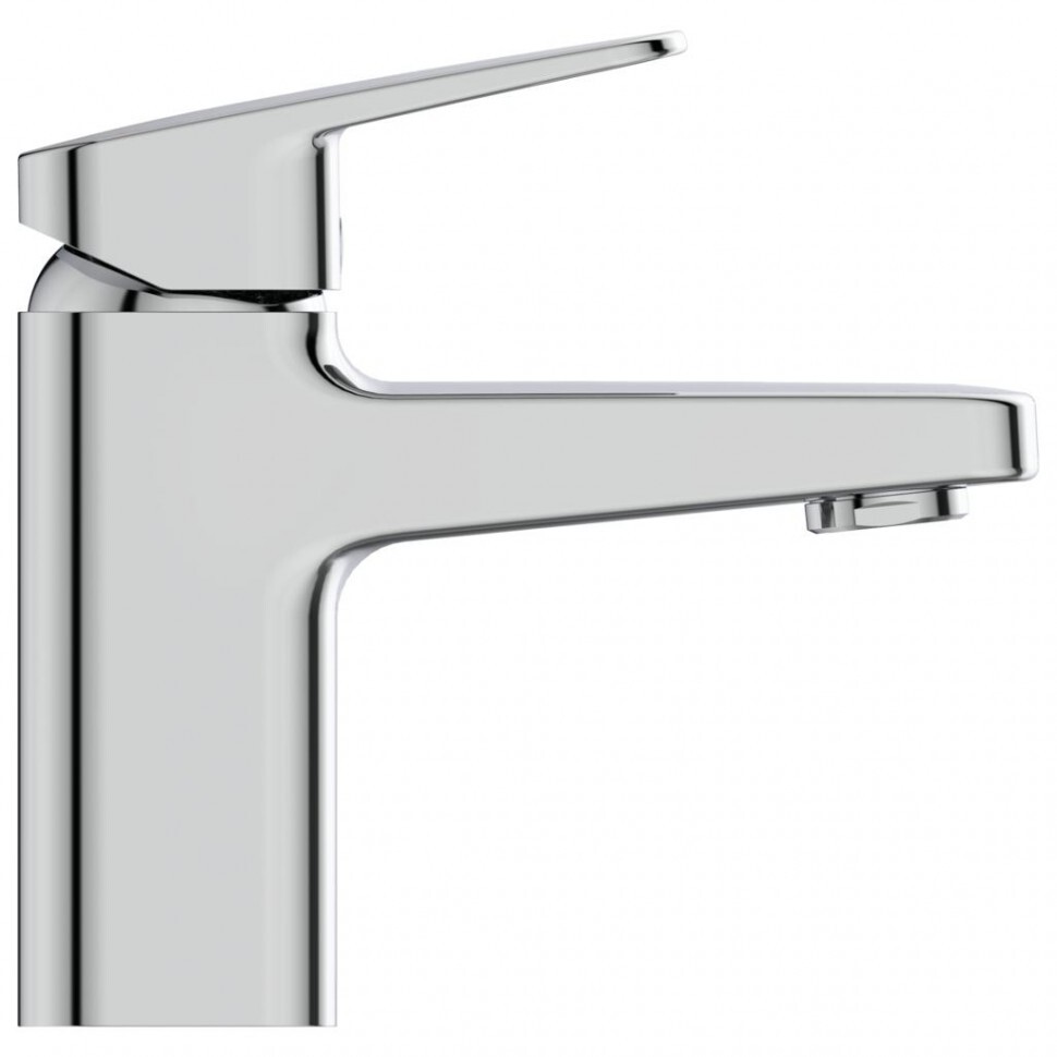 CERAPLAN Смеситель для раковины с независимым нажимным металлическим донным клапаном Click, система монтажа EASY-FIX (облегченный монтаж), гибкая подводка G3/8", картридж FirmaFlow 38 мм с функцией HWTC (ограничение максимальной температуры горячей воды), металлическая рукоятка с индикаторами горячей / холодной воды, аэратор Slim с ограничением потока 5 л/мин, для монтажа с умывальниками с отверстием перелива