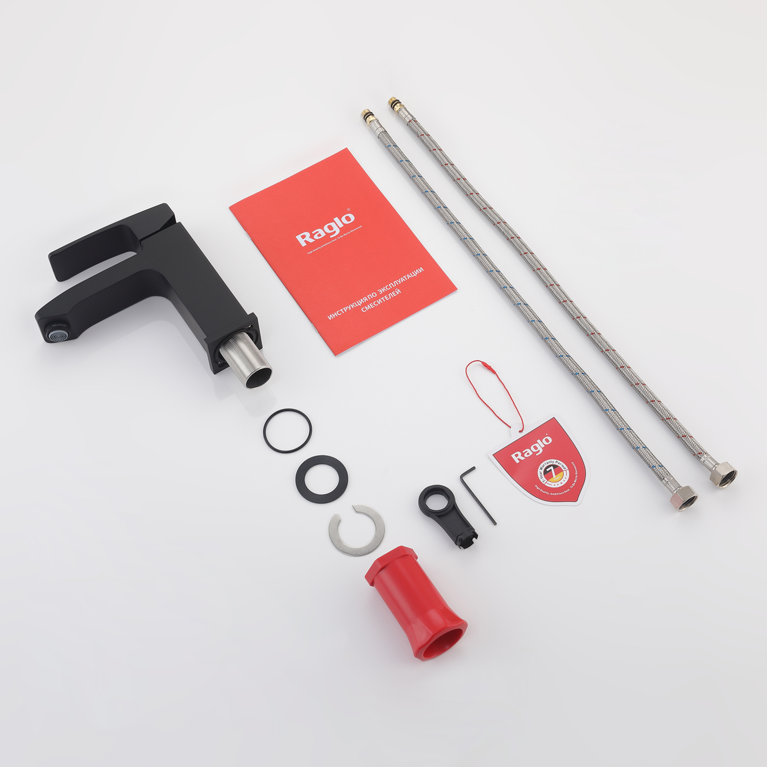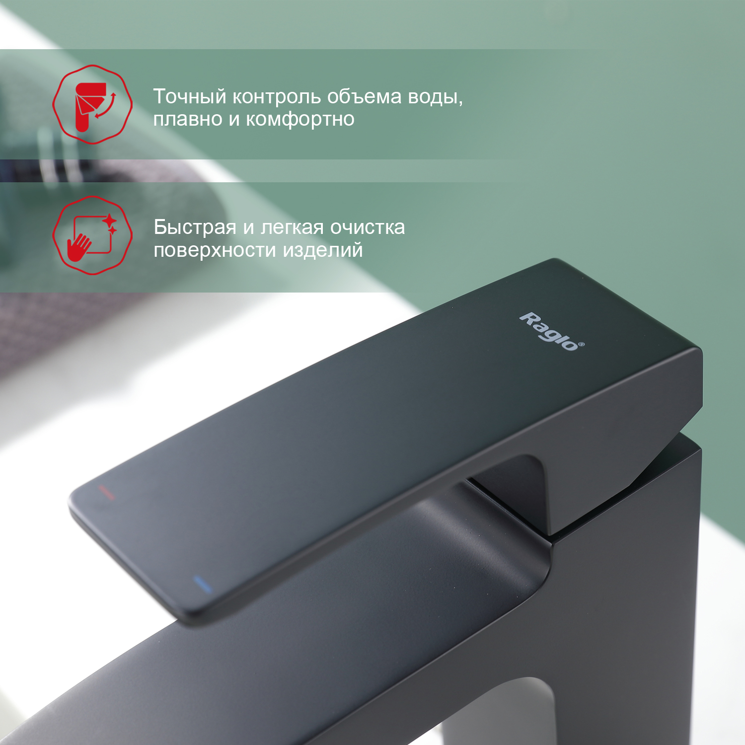 Смеситель для раковины Raglo R01.10.06, черный. Смеситель для раковины RAGLО имеет повышенную прочность корпуса. Соответствует требованиям международного стандарта. Аэратор гарантирует одинаковый поток воды, сеточка рассеивает напор, вода смягчается. Смеситель устанавливается на гайке, нижняя часть смесителя вставляется в отверстие для монтажа и затягивается гайкой для фиксации. Данный Смеситель для раковины имеет надежный стационарный излив, не меняющий своего положении. Смеситель прекрасно смешивает потоки воды, а помимо этого обладает невысоки показателем шумов. Быстрый монтаж. Гарантия производителя 7 лет.