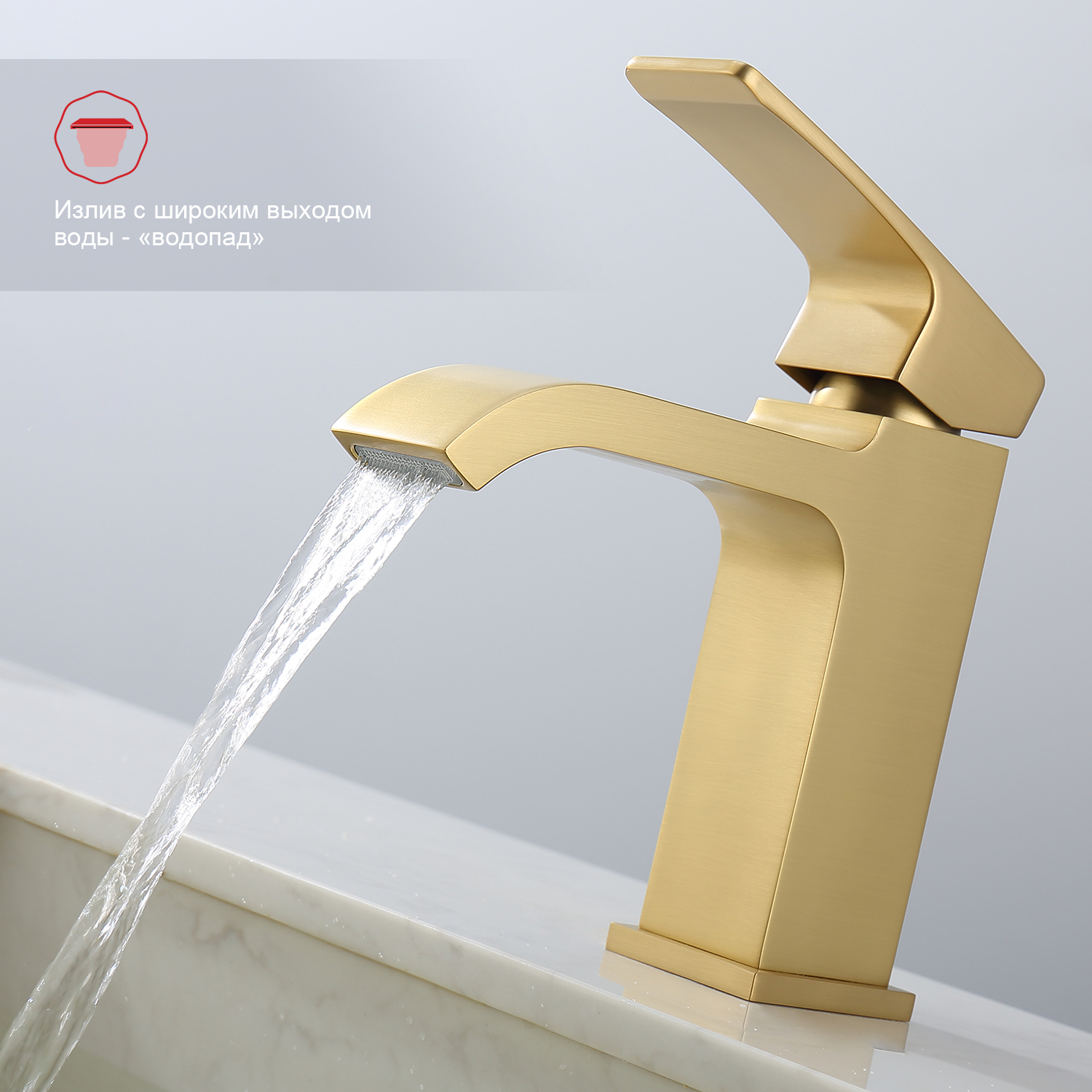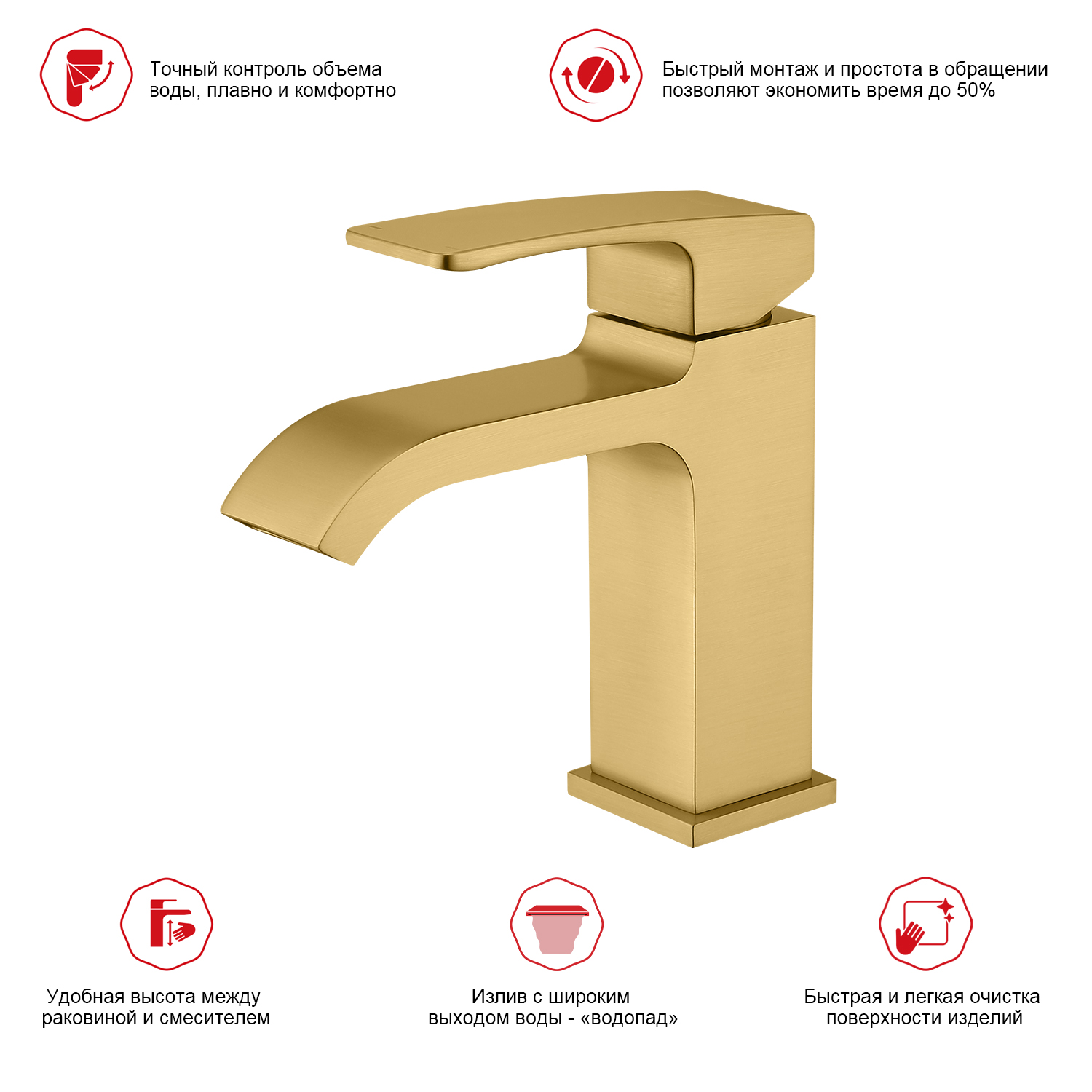 Смеситель для раковины Raglo R02.10.03, сатин золотой. Смеситель для раковины RAGLО имеет повышенную прочность корпуса. Соответствует требованиям международного стандарта. Одна рукоять для регулировки воды. Аэратор гарантирует одинаковый поток воды, сеточка рассеивает напор, вода смягчается. Смеситель устанавливается на гайке, нижняя часть смесителя вставляется в отверстие для монтажа и затягивается гайкой для фиксации. Данный Смеситель для раковины имеет надежный стационарный излив, не меняющий своего положении. Смеситель прекрасно смешивает потоки воды, а помимо этого обладает невысоки показателем шумов. Быстрый монтаж. Гарантия производителя 7 лет.