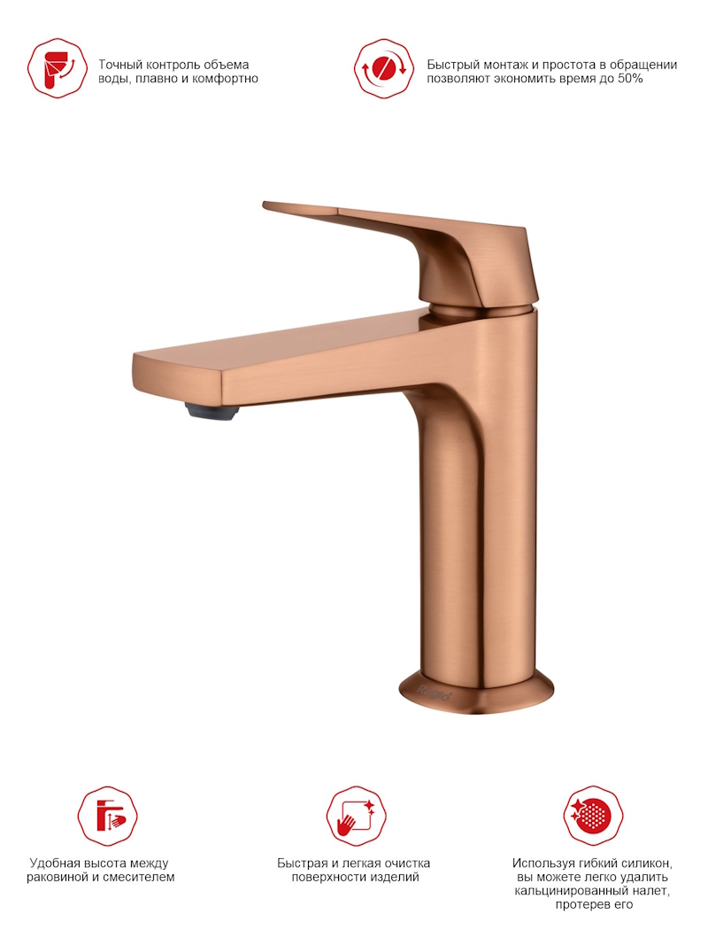 Смеситель для раковины Raglo R07.10.33 в цвете матовая медь — это идеальное сочетание современного минималистичного дизайна и высокого качества. Изготовленный из высококачественной латуни, этот кран для умывальника обеспечивает долговечность и надёжность в использовании, а также устойчивость к механическим повреждениям. Механизм смесителя для раковины основан на керамическом картридже с рычажным управлением, что гарантирует лёгкость и точность регулировки температуры и напора воды. Дизайн этого смесителя станет настоящим украшением вашей ванной комнаты, гармонично вписываясь в любой интерьер благодаря лаконичным формам и элегантным линиям.