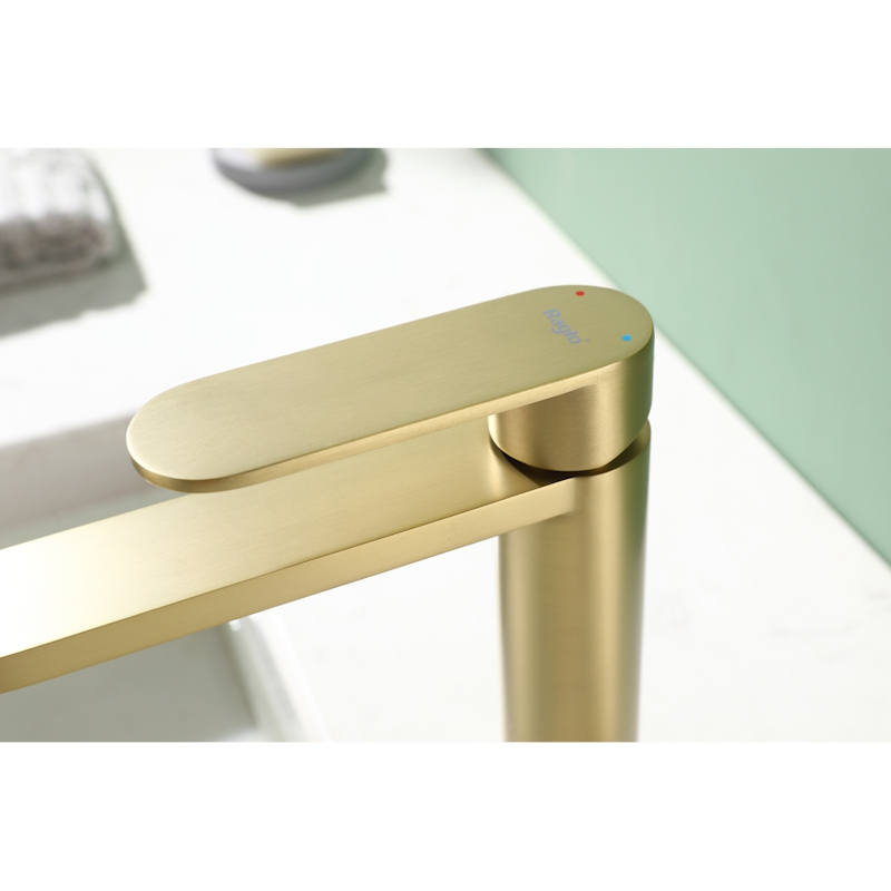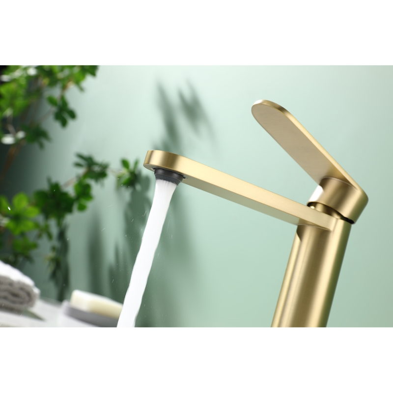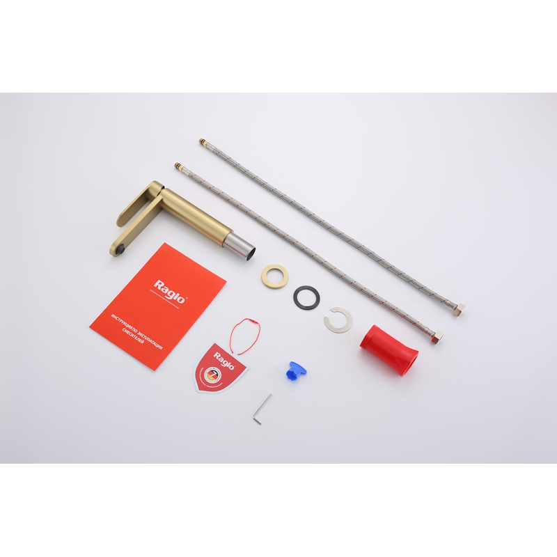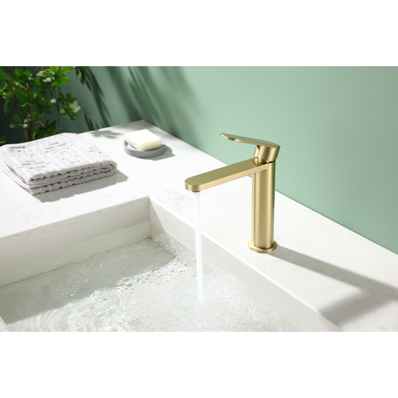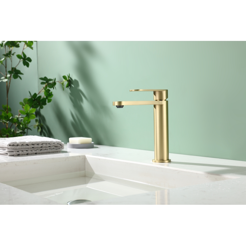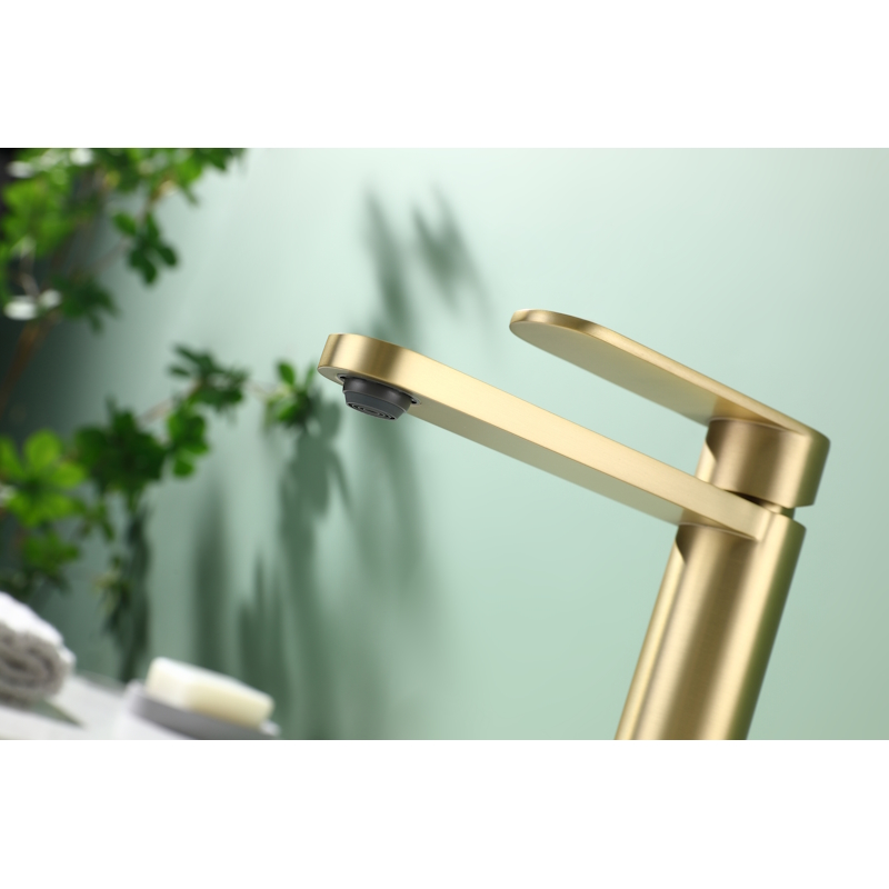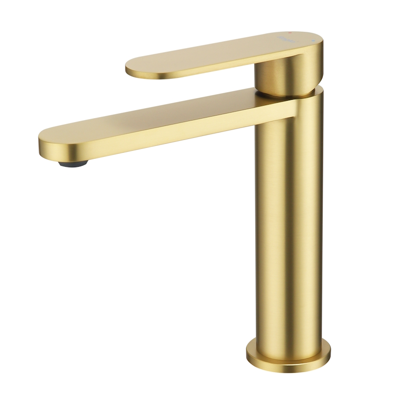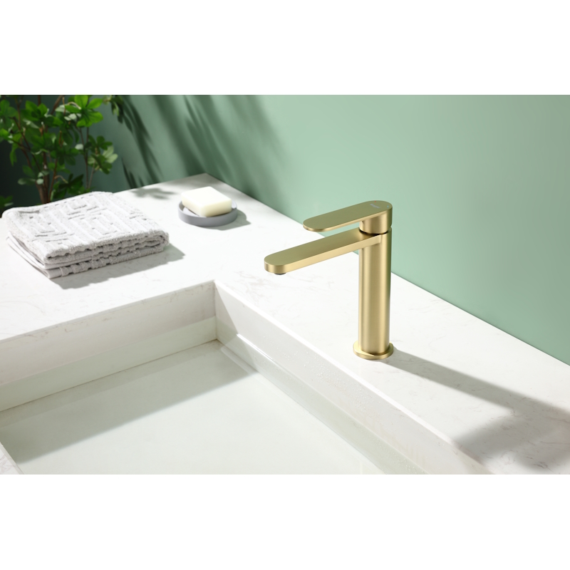 Смеситель для раковины R10.10.03. Однорычажный смеситель для раковины (для умывальника) в ванную, выполненный в цвете "золотой сатин" (матовое золото). Соответствует требованиям международного стандарта. Одна рукоять для регулировки воды. Аэратор для водопроводной воды Neoperl® с функцией самоочистки гарантирует одинаковый поток воды, сеточка рассеивает напор, вода смягчается. Смеситель устанавливается на гайке, нижняя часть смесителя вставляется в отверстие для монтажа и затягивается гайкой для фиксации. Данный Смеситель для раковины имеет надежный стационарный излив, не меняющий своего положении. Смеситель прекрасно смешивает потоки воды, а помимо этого обладает невысоки показателем шумов. Быстрый монтаж. Гарантия производителя 5 лет.