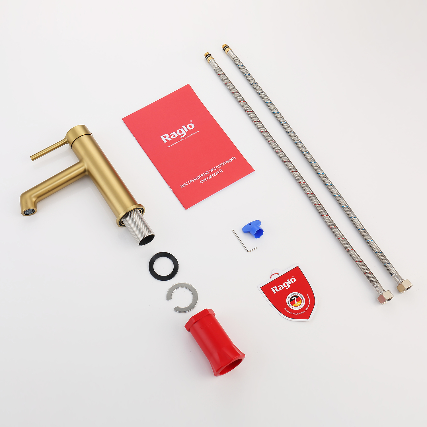 Смеситель для раковины RAGLО имеет повышенную прочность корпуса. Соответствует требованиям международного стандарта. Одна рукоять для регулировки воды. Аэратор гарантирует одинаковый поток воды, сеточка рассеивает напор, вода смягчается. Смеситель устанавливается на гайке, нижняя часть смесителя вставляется в отверстие для монтажа и затягивается гайкой для фиксации. Данный Смеситель для раковины имеет надежный стационарный излив, не меняющий своего положении. Смеситель прекрасно смешивает потоки воды, а помимо этого обладает невысоким показателем шумов. Быстрый монтаж. Крепление на усиленной гайке. Подводка длиной 55 см имеет латунные гайки. Гарантия на смеситель 7 лет.