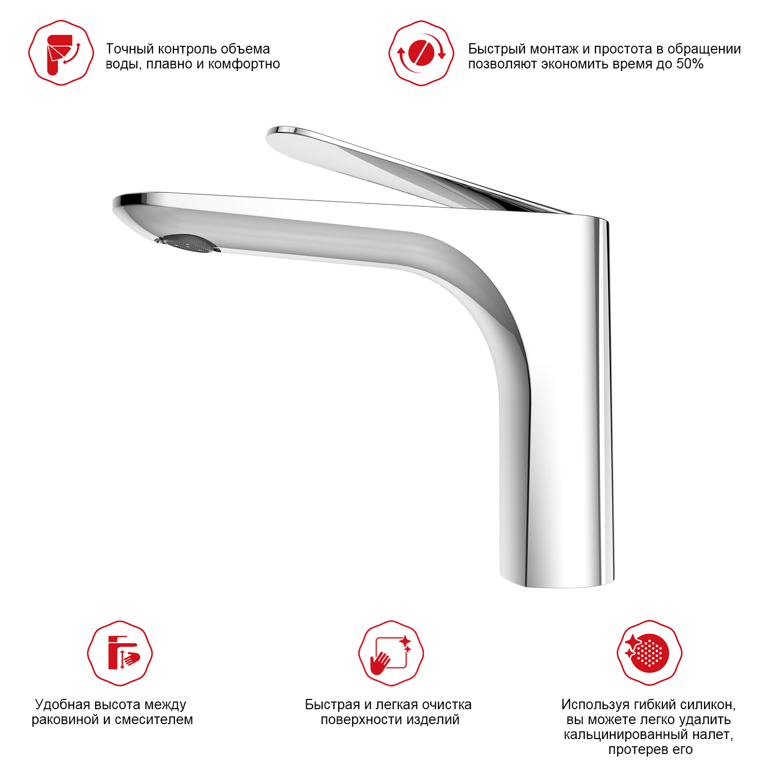 R21.10 Смеситель для раковины из латуни в хроме, Данный Смеситель для раковины имеет надежный стационарный излив, не меняющий своего положении. Смеситель прекрасно смешивает потоки воды, а помимо этого обладает невысоким показателем шумов. Быстрый монтаж. Крепление на усиленной гайке. Подводка длиной 55 см имеет латунные гайки. Имеет награду Red Dot Award. Гарантия 7 лет.