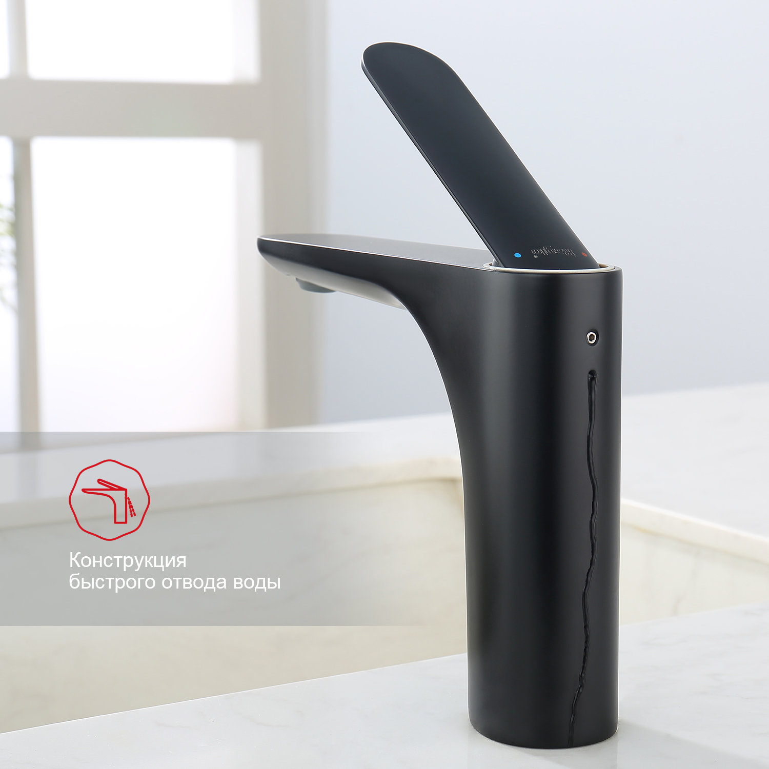 R21.10.06 Смеситель для раковины из латуни. Данный Смеситель для раковины имеет надежный стационарный излив, не меняющий своего положении. Смеситель прекрасно смешивает потоки воды, а помимо этого обладает невысоким показателем шумов. Быстрый монтаж. Крепление на усиленной гайке. Подводка длиной 55 см имеет латунные гайки. Имеет награду Red Dot Award. Гарантия 7 лет.