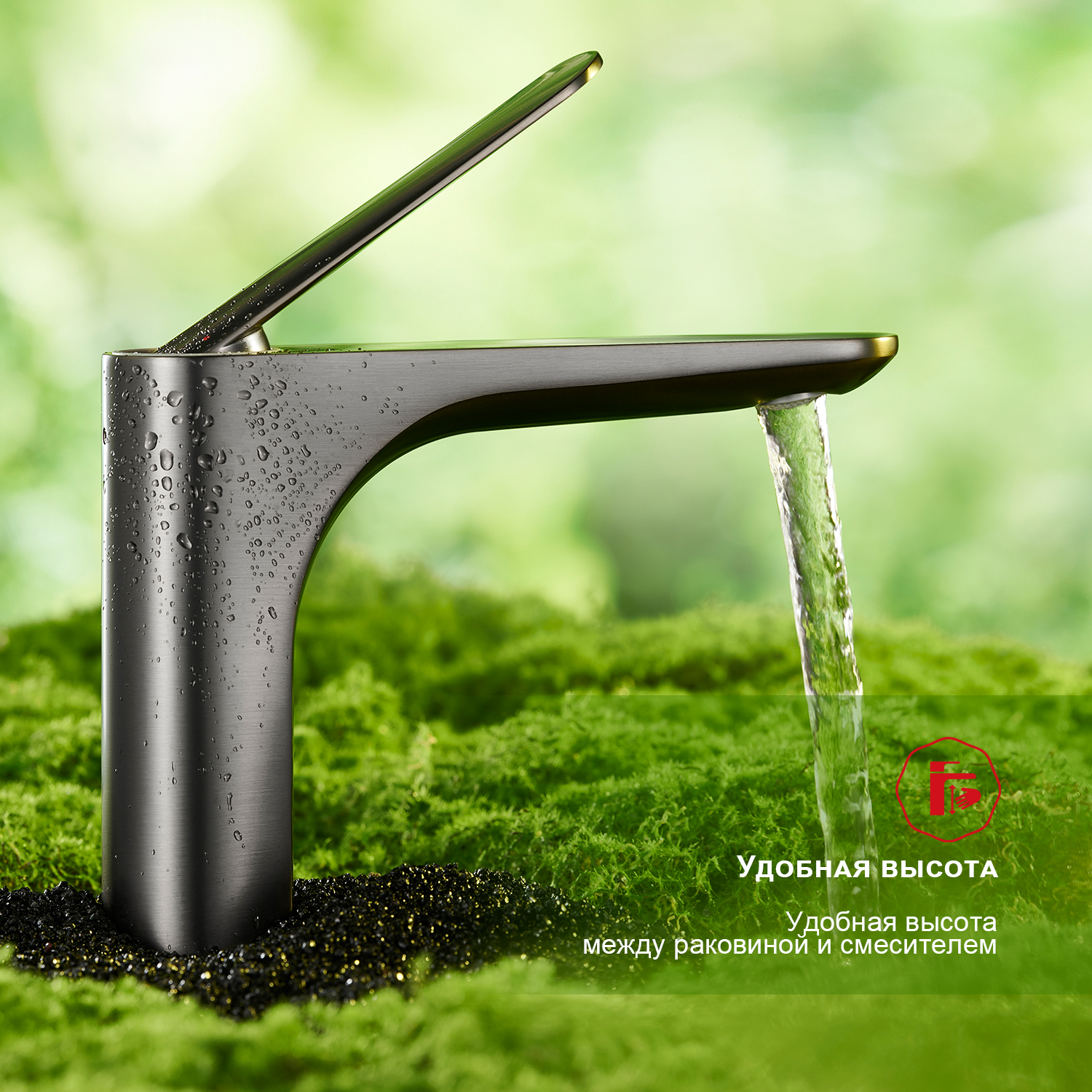 R21.10.09 Смеситель для раковины из латуни. Данный Смеситель для раковины имеет надежный стационарный излив, не меняющий своего положении. Смеситель прекрасно смешивает потоки воды, а помимо этого обладает невысоким показателем шумов. Быстрый монтаж. Крепление на усиленной гайке. Подводка длиной 55 см имеет латунные гайки. Имеет награду Red Dot Award. Гарантия 7 лет.
