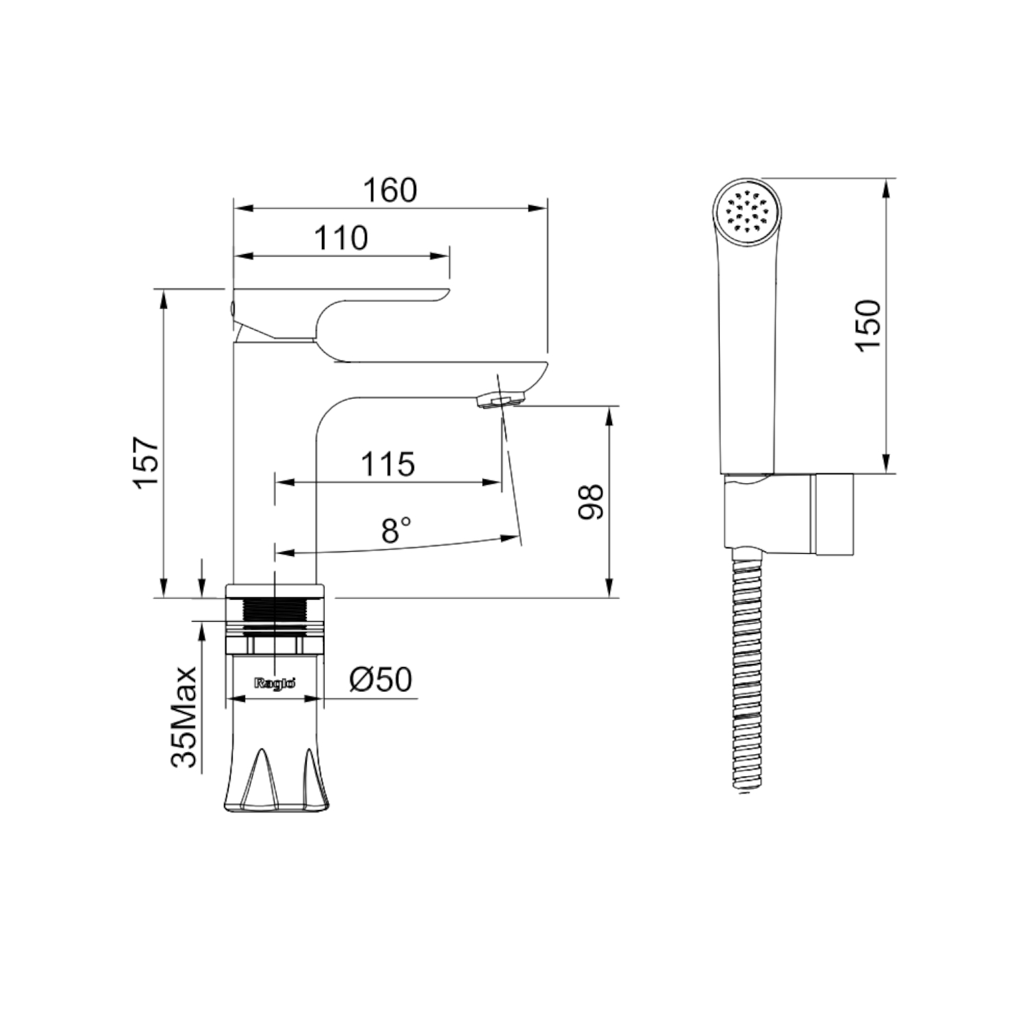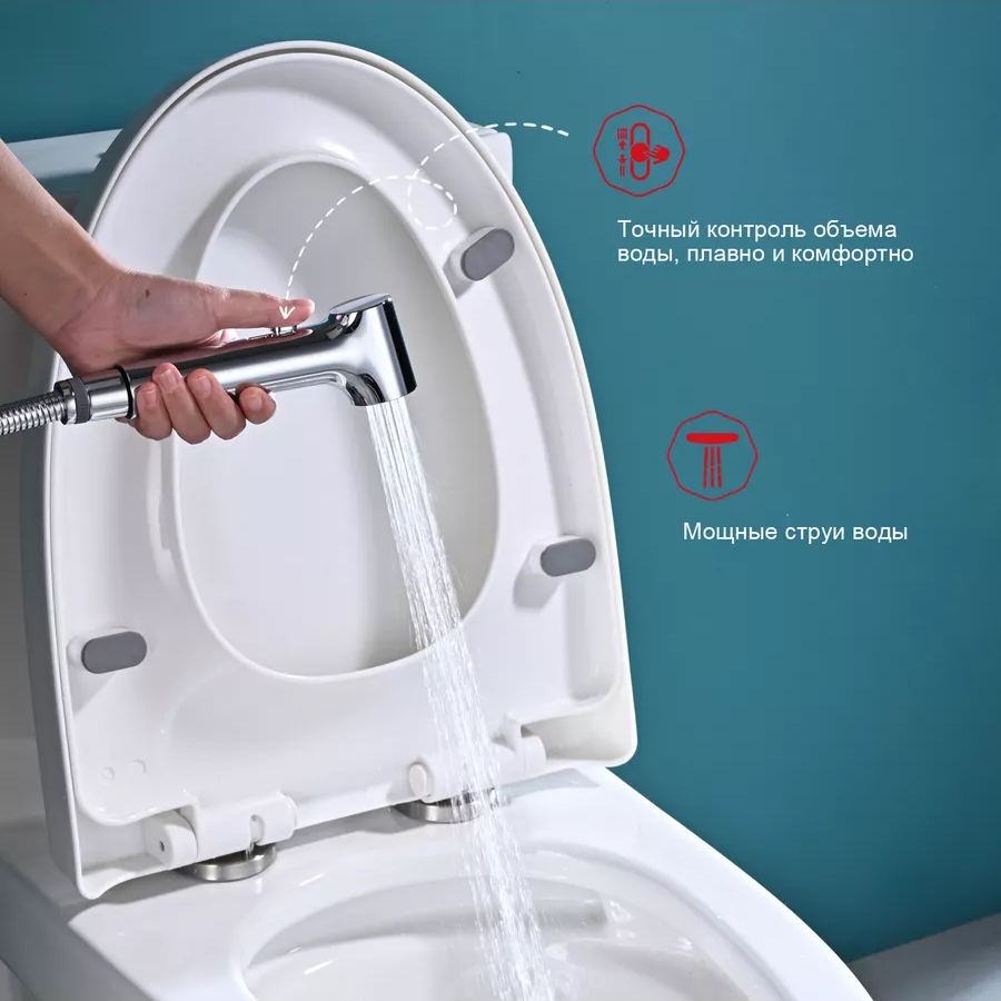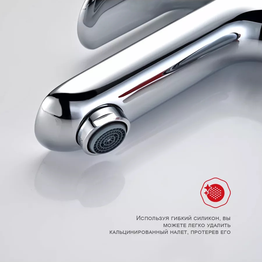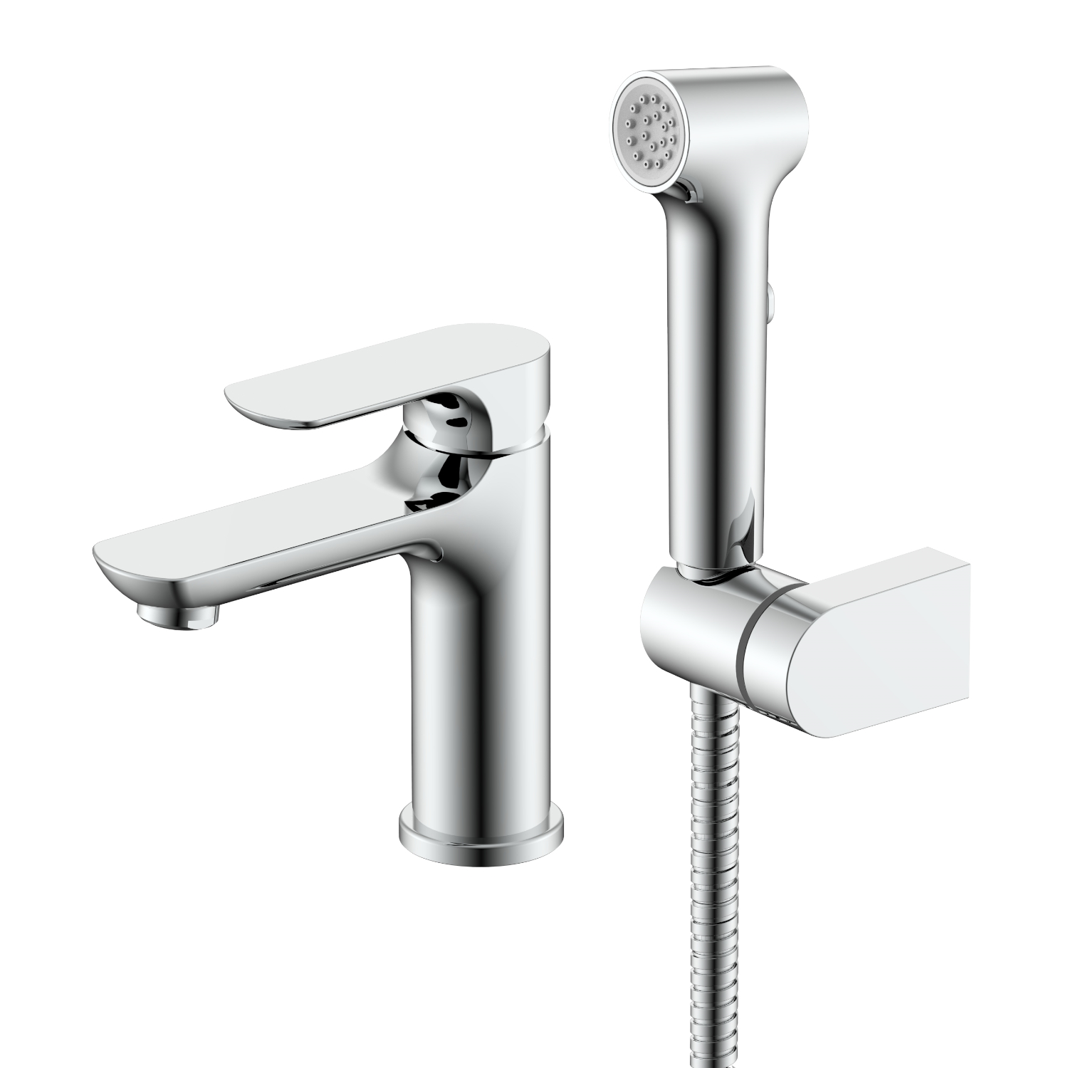 Raglo R03.12, хром. Смеситель для раковины с гигиеническим душем, в цвете хром, лейка с регулировкой напора. Шланг и настенное крепление - держатель лейки в комплекте.
