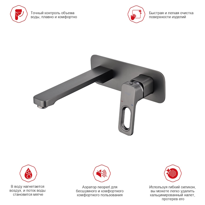 R51.11.09 Встраиваемый смеситель для раковины от Raglo - это качественное и функциональное сантехническое оборудование от производителя. Если у вас есть желание обновить свою ванную комнату, то данный смеситель станет прекрасным выбором для вас. Он сочетает в себе стильный дизайн и высокие технические характеристики, которые позволят вам комфортно пользоваться умывальником. Его удлиненный излив обеспечит удобство и комфорт при использовании. Благодаря керамическому картриджу, вы сможете регулировать поток воды с легкостью, получая идеальную температуру воды для своих нужд. Смеситель имеет функцию скрытого монтажа, что делает его эстетичным и современным. Отделка "графит" придает смесителю изысканности и делает его устойчивым к коррозии. Этот смеситель оснащен надежной и долговечной латунной конструкцией, что гарантирует его долгий срок службы. Комплектация смесителя включает все необходимые элементы для установки, что позволяет вам приступить к использованию оборудования сразу же после покупки.