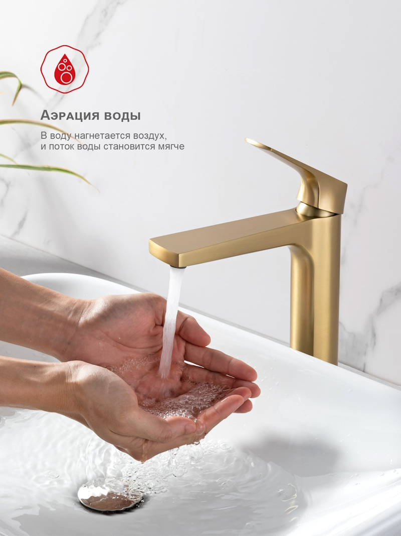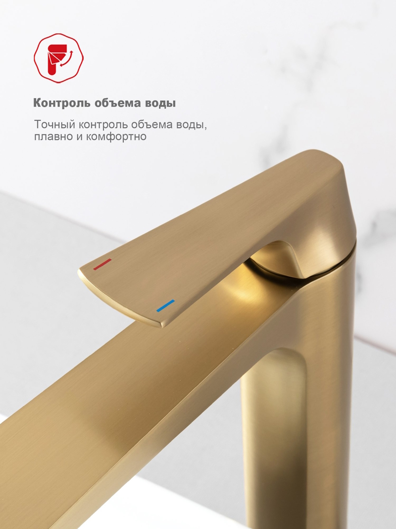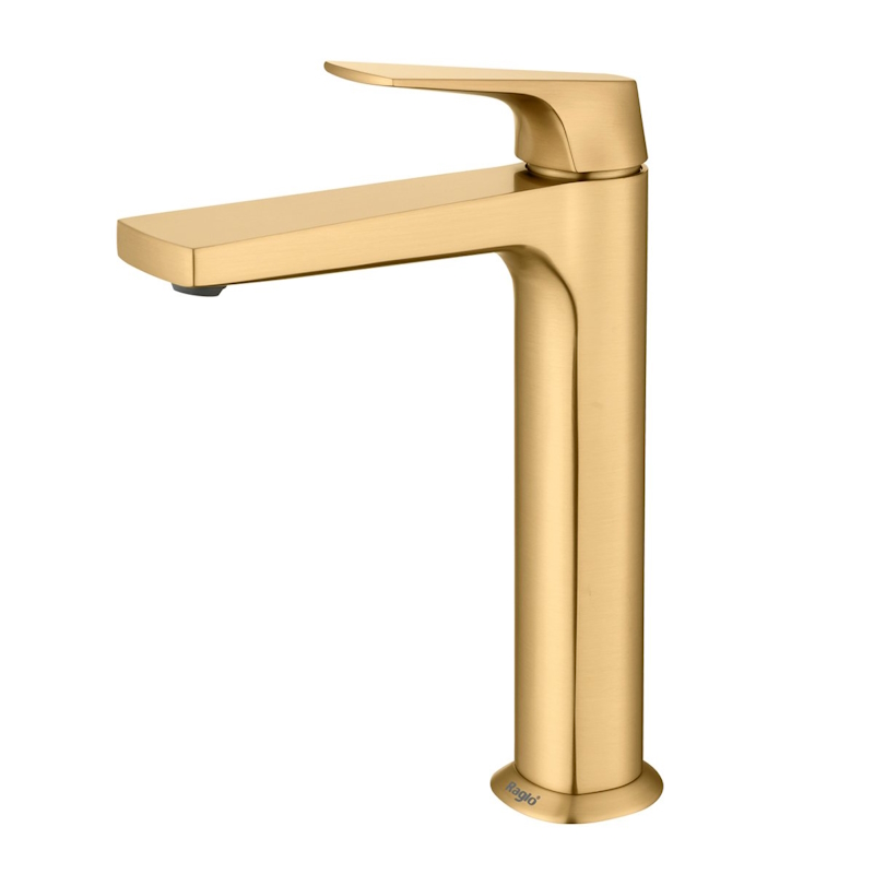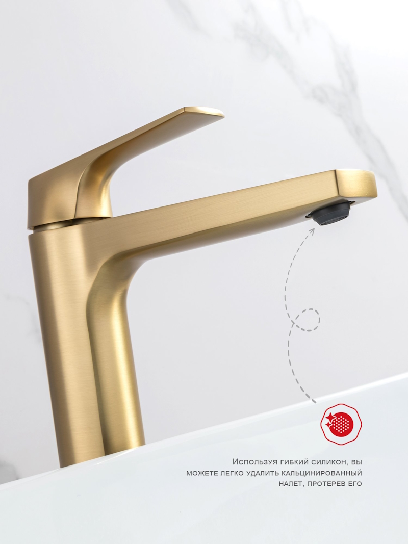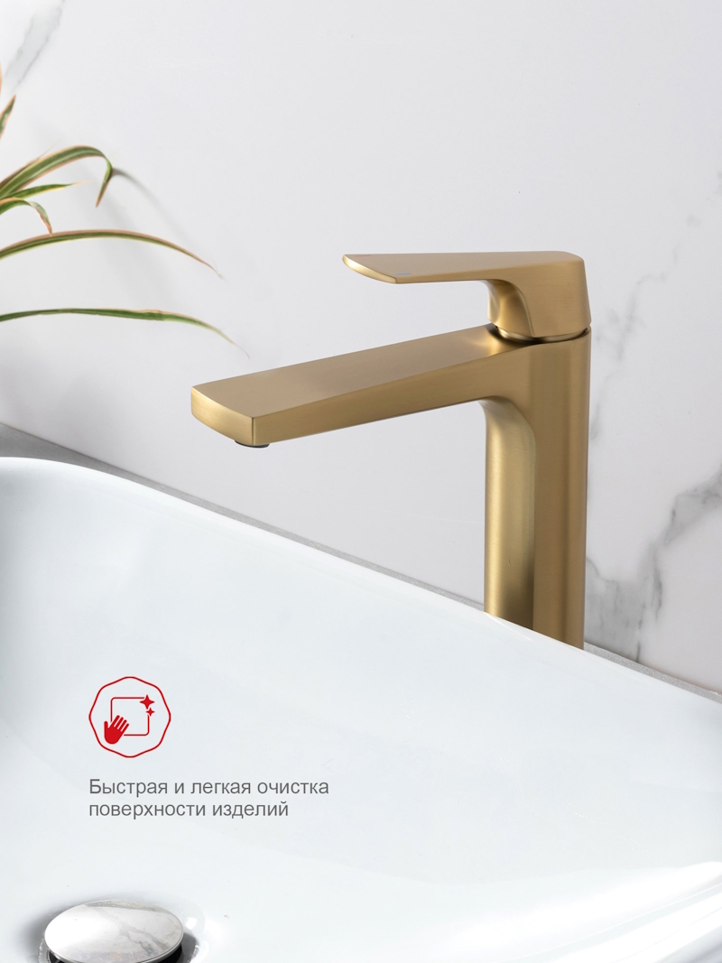 Смеситель для раковины высокий Raglo R07.15.03, золотой сатин (матовое золото) — это идеальное сочетание современного минималистичного дизайна и высокого качества. Изготовленный из латуни, этот высокий кран для умывальника обеспечивает долговечность и надёжность в использовании, а также устойчивость к механическим повреждениям. Механизм смесителя для раковины основан на керамическом картридже с рычажным управлением, что гарантирует лёгкость и точность регулировки температуры и напора воды. Его минималистичный дизайн станет настоящим украшением вашей ванной комнаты, гармонично вписываясь в любой интерьер благодаря лаконичным формам и элегантным линиям.