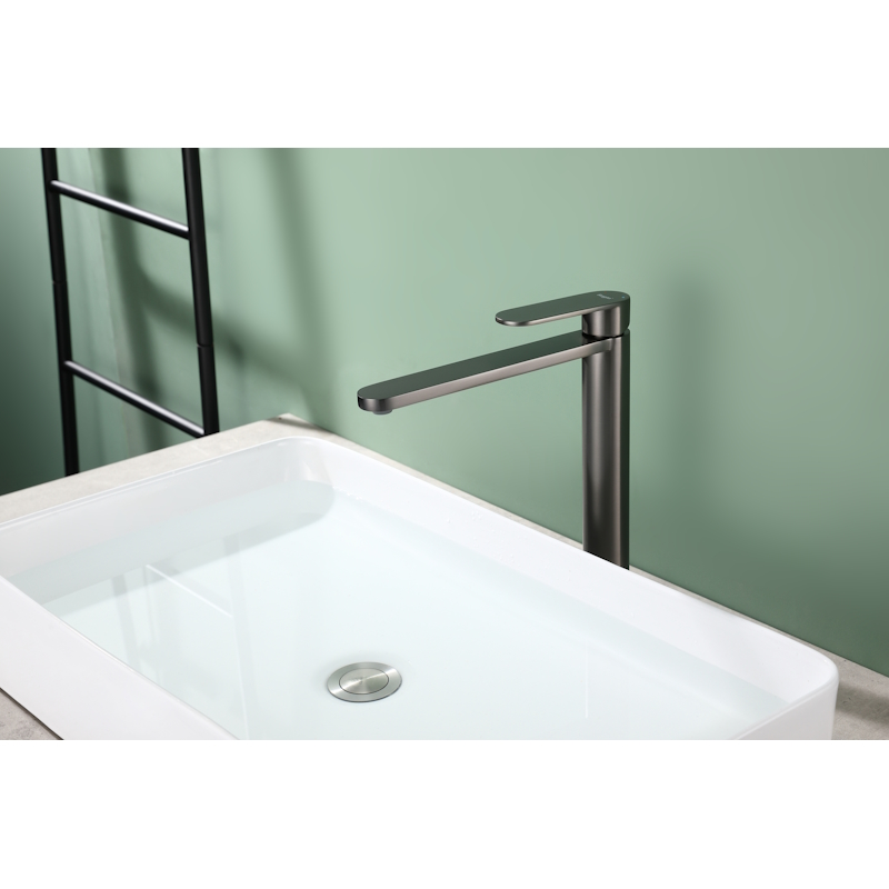 Смеситель выполнен в цвете "графит", который придаст вашей ванной комнате изысканность и элегантность.